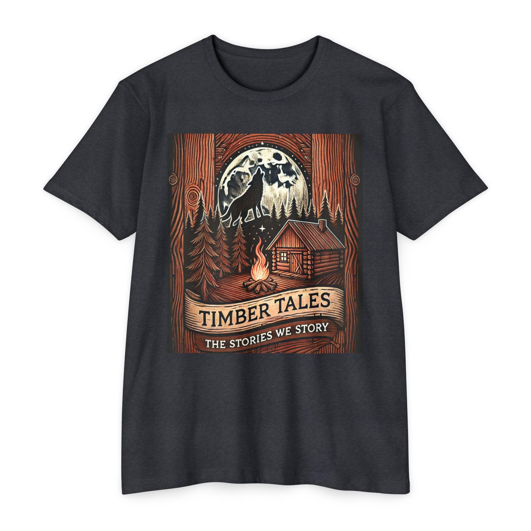 Timber Tales Graphic Tee – Wolf, Cabin, Moon Nature Adventure Shirt