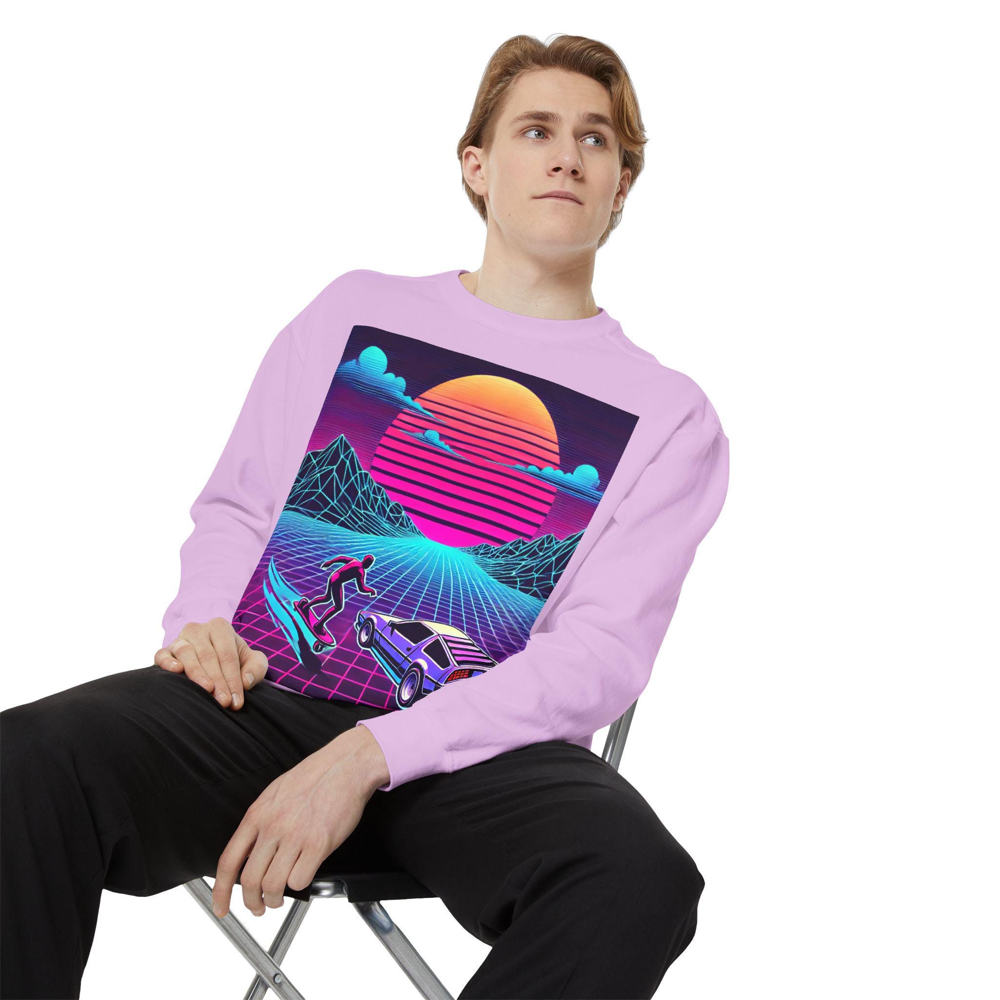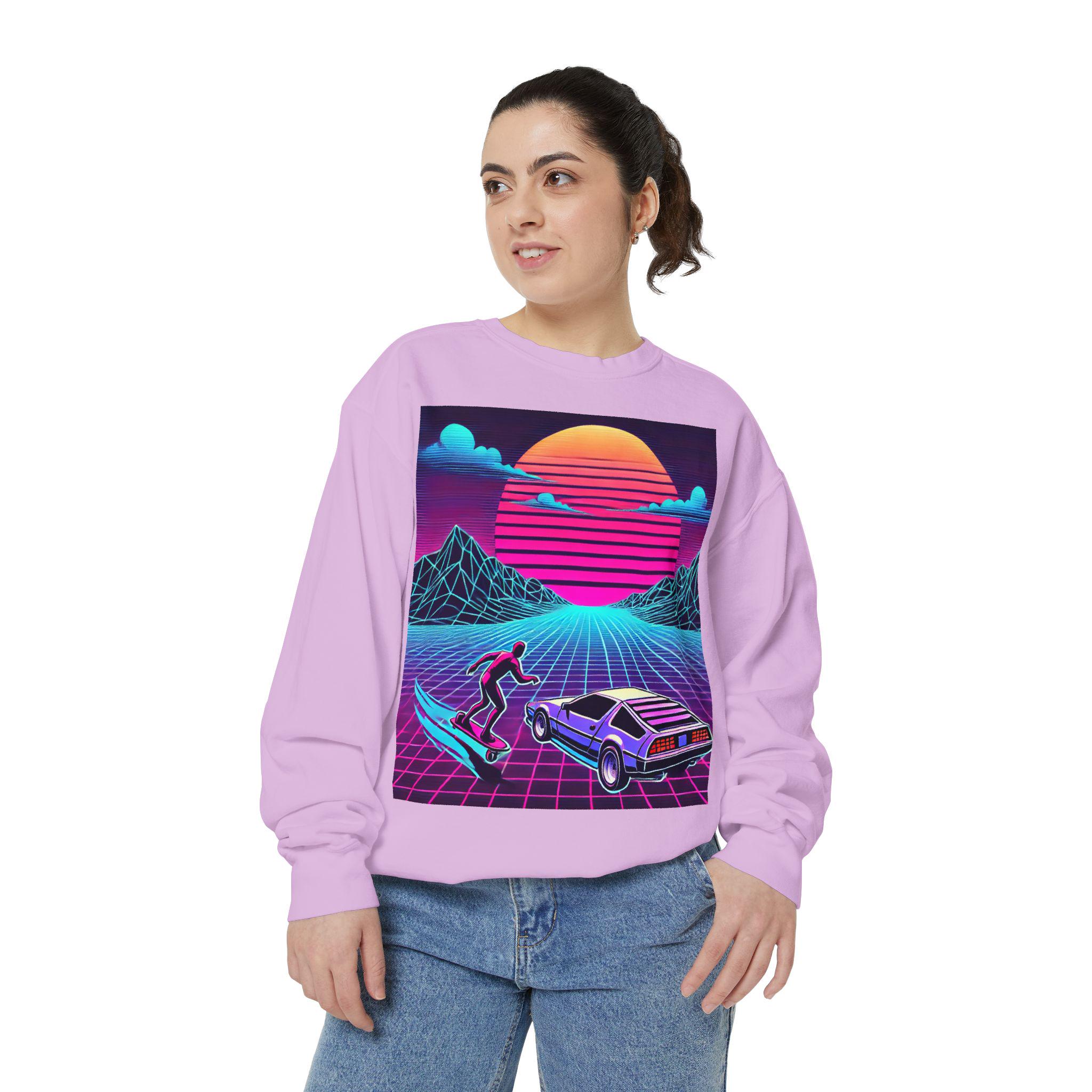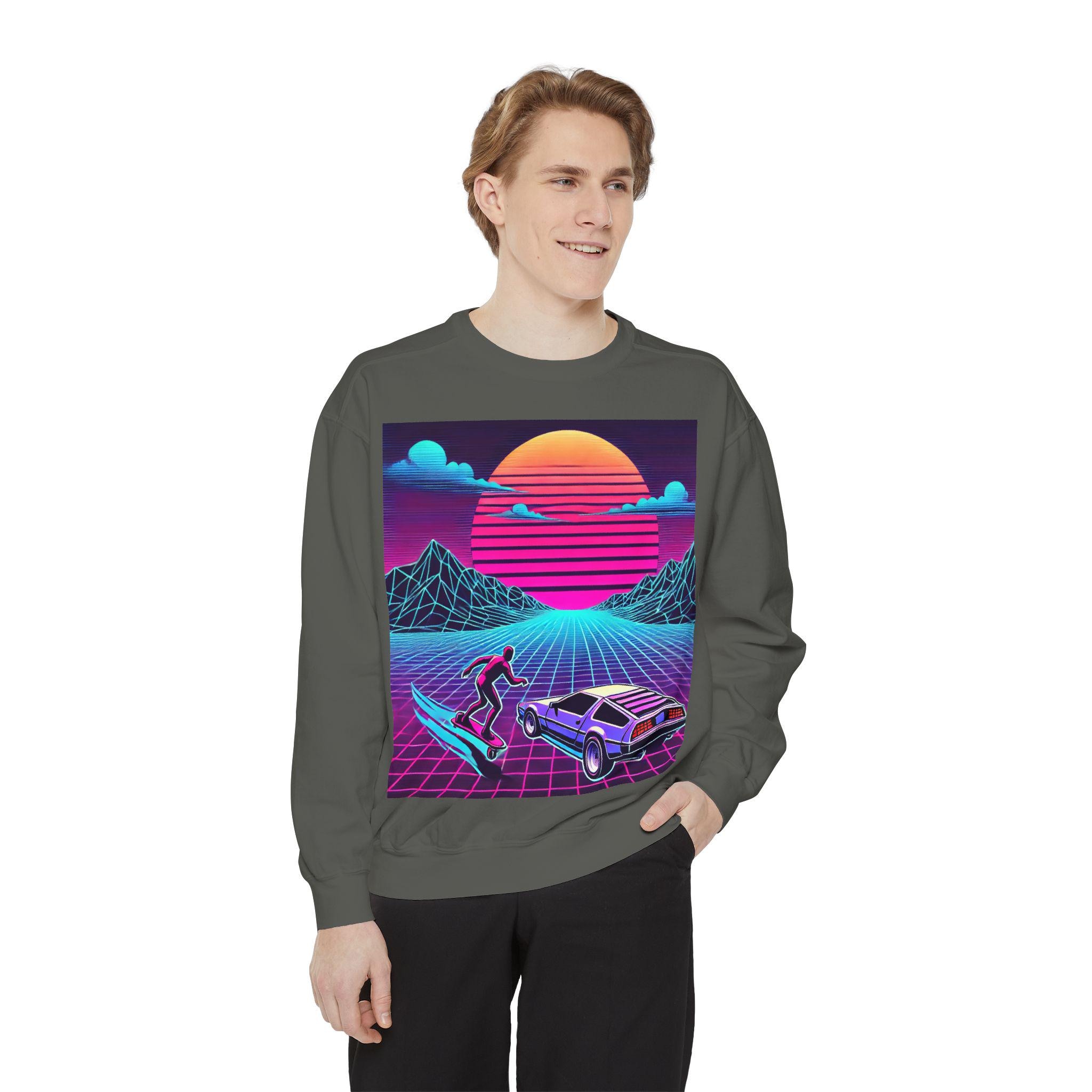 Step into cozy nostalgia with our garment-dyed sweatshirt, designed to feel like a beloved classic from day one. Crafted from an 80/20 ring-spun cotton blend, this medium-heavy fabric drapes effortlessly into a relaxed silhouette. The faded, vintage-style graphic adds a touch of charm, while the ribbed collar, cuffs, and hem ensure a comfortable and flattering fit that holds its shape wash after wash.