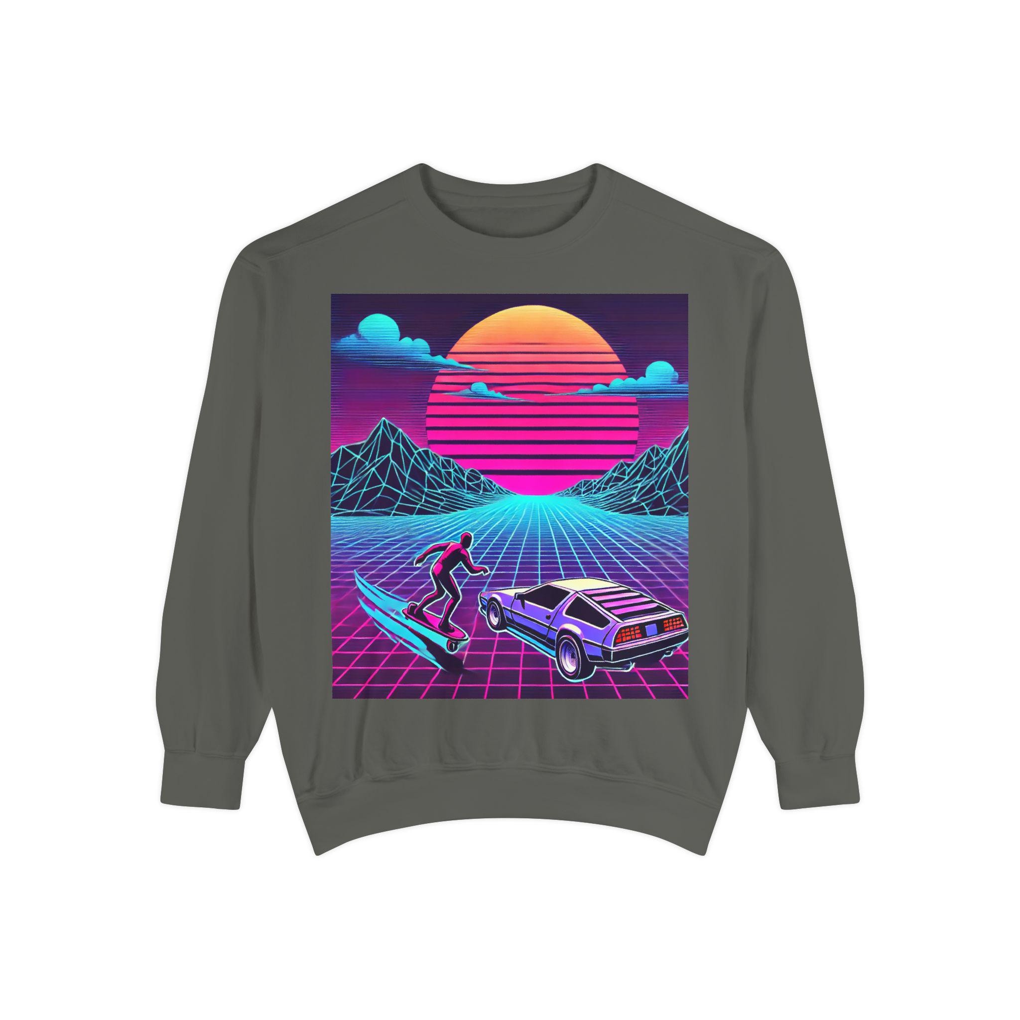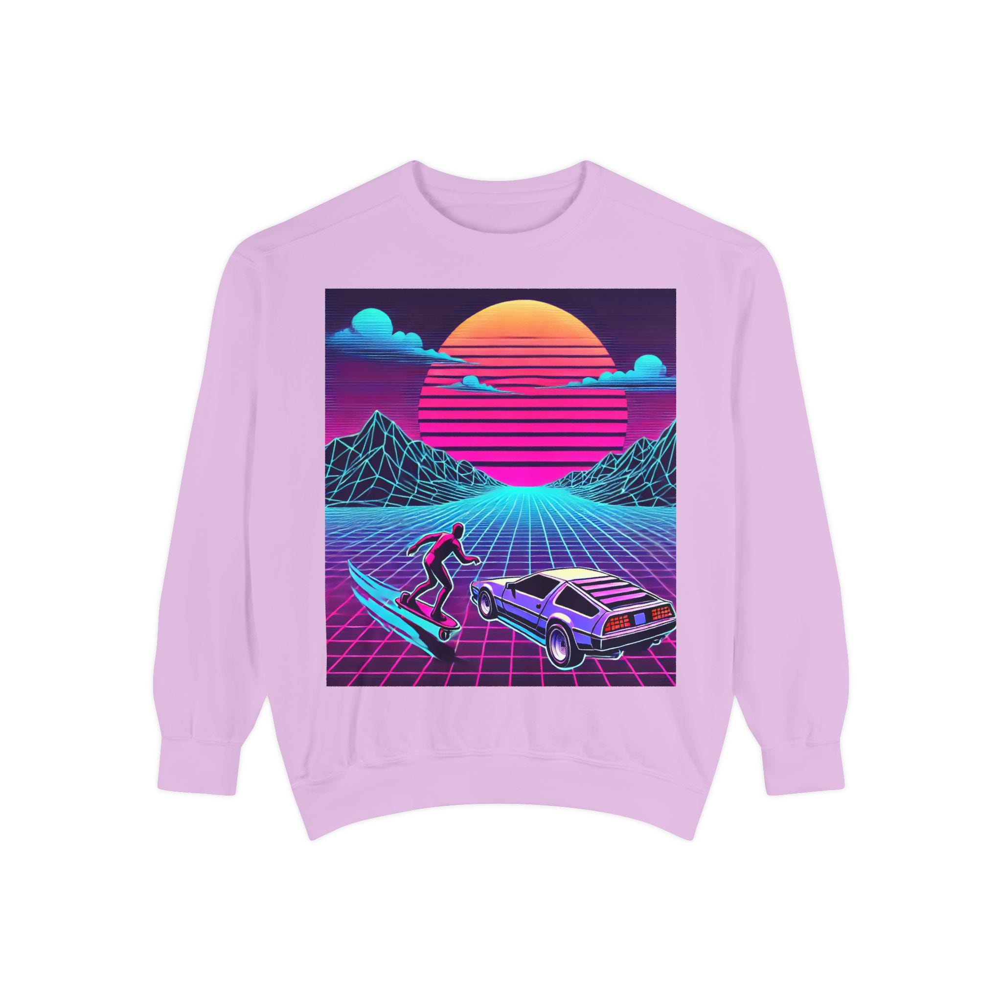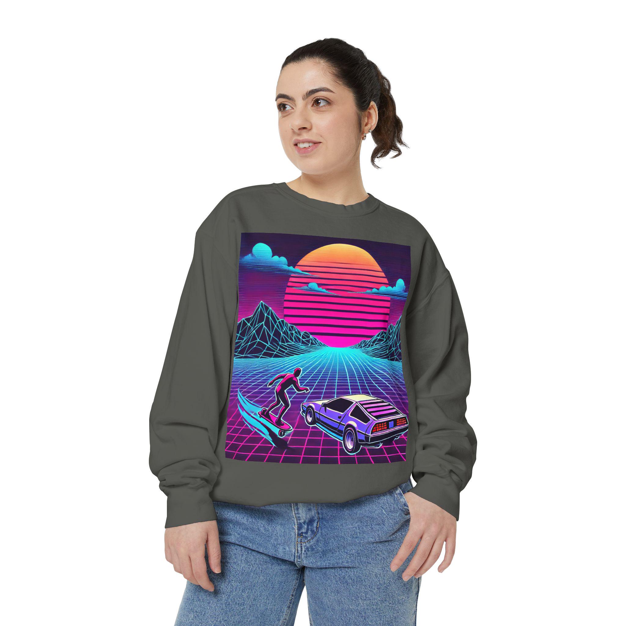 Step into cozy nostalgia with our garment-dyed sweatshirt, designed to feel like a beloved classic from day one. Crafted from an 80/20 ring-spun cotton blend, this medium-heavy fabric drapes effortlessly into a relaxed silhouette. The faded, vintage-style graphic adds a touch of charm, while the ribbed collar, cuffs, and hem ensure a comfortable and flattering fit that holds its shape wash after wash.