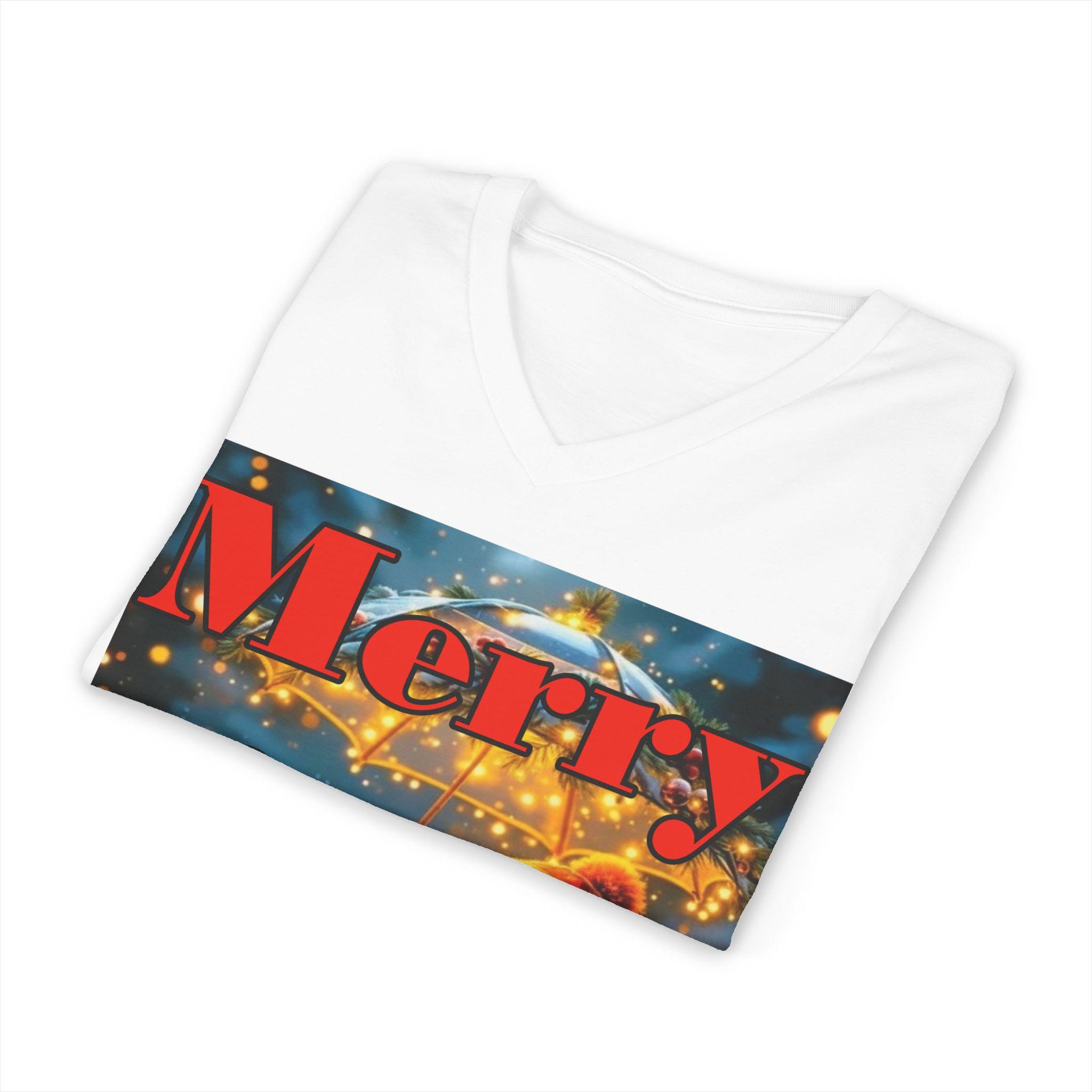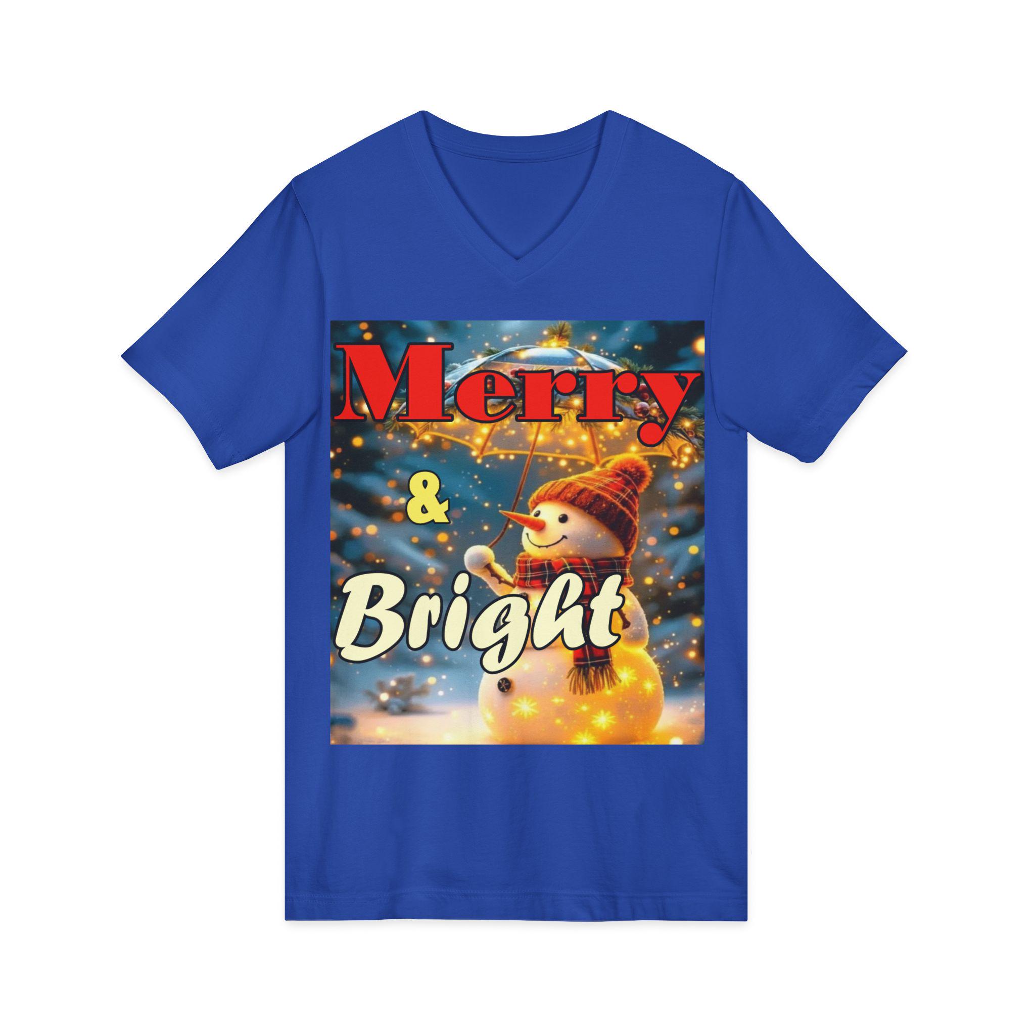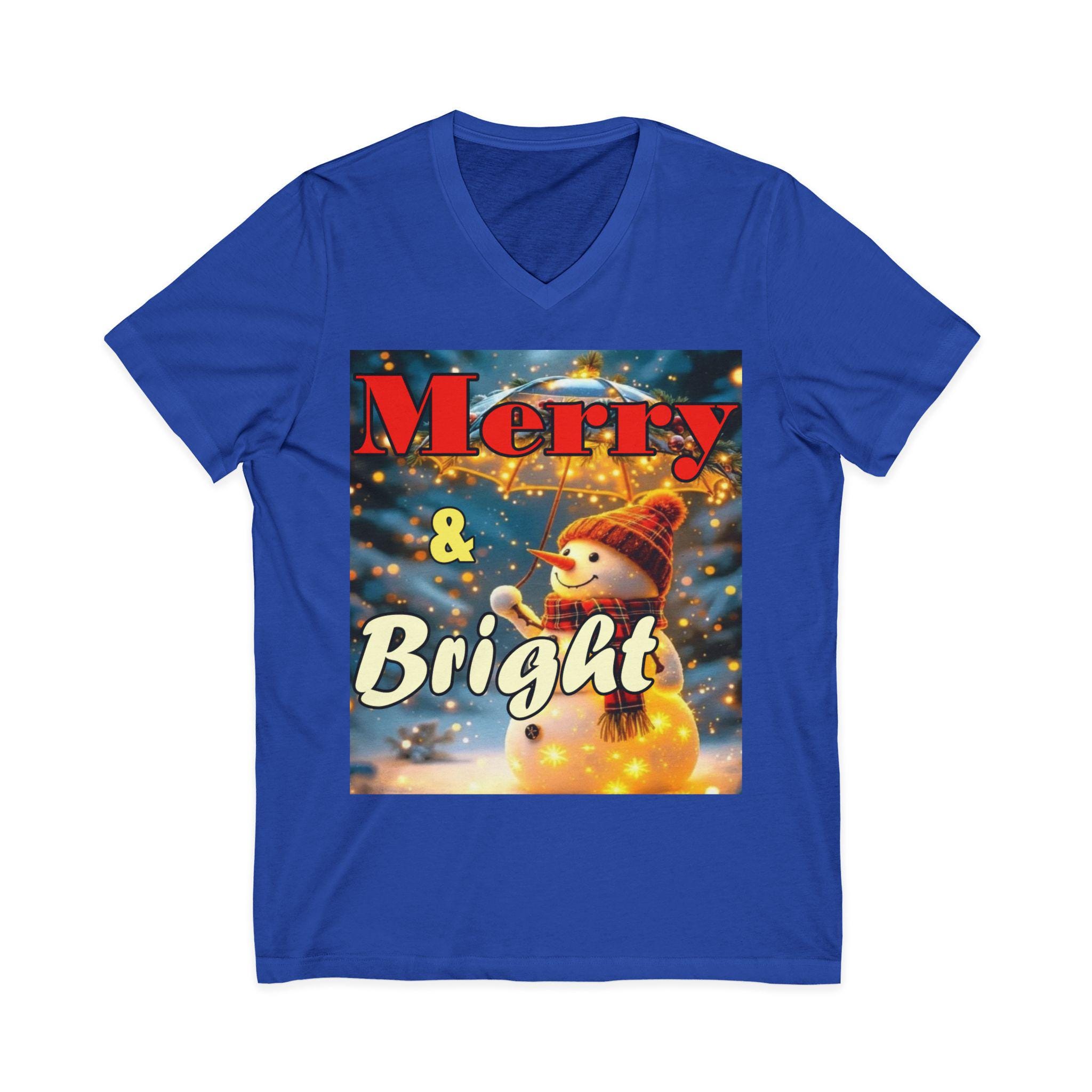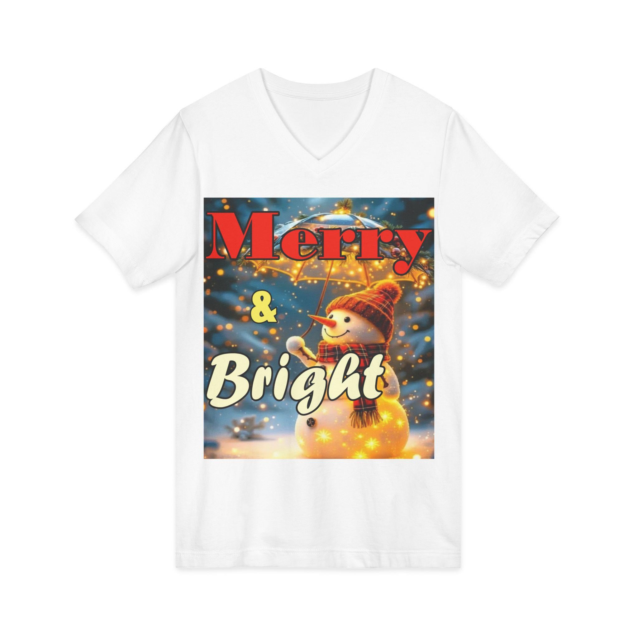 This vintage-inspired V-neck tee brings cozy holiday cheer without the fuss. A playful “Merry & Bright” print—complete with a jaunty snowman and twinkling lights—feels like a warm evening by the fire. The lightweight cotton drapes softly, whether layered under a jacket for a chilly night out or worn alone at a casual gathering. Thoughtful construction (side seams, shoulder tape, ribbed collar) keeps the silhouette flattering and true wash after wash. Ethically made and designed for adults who love a nostalgic holiday look with a fresh, modern edge.