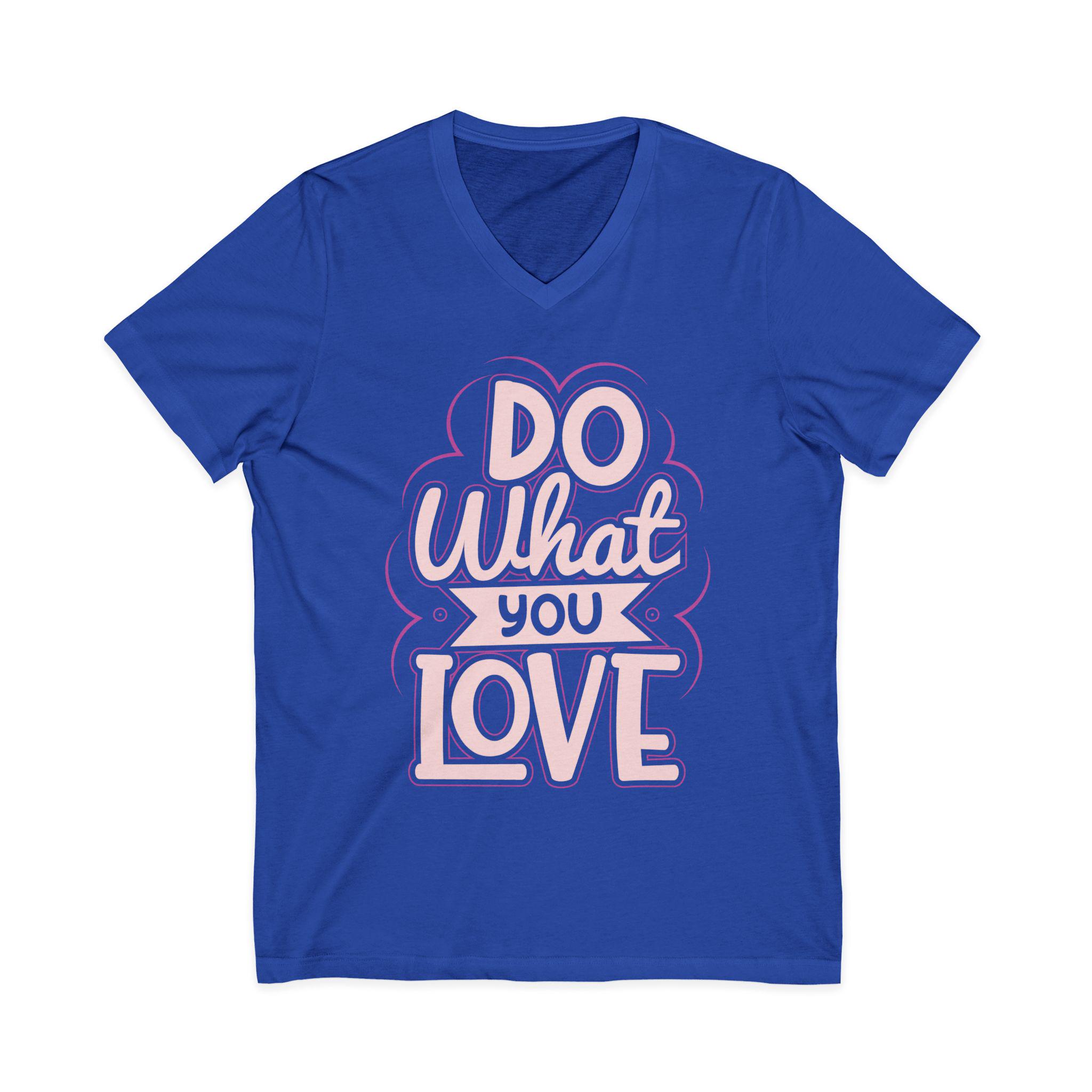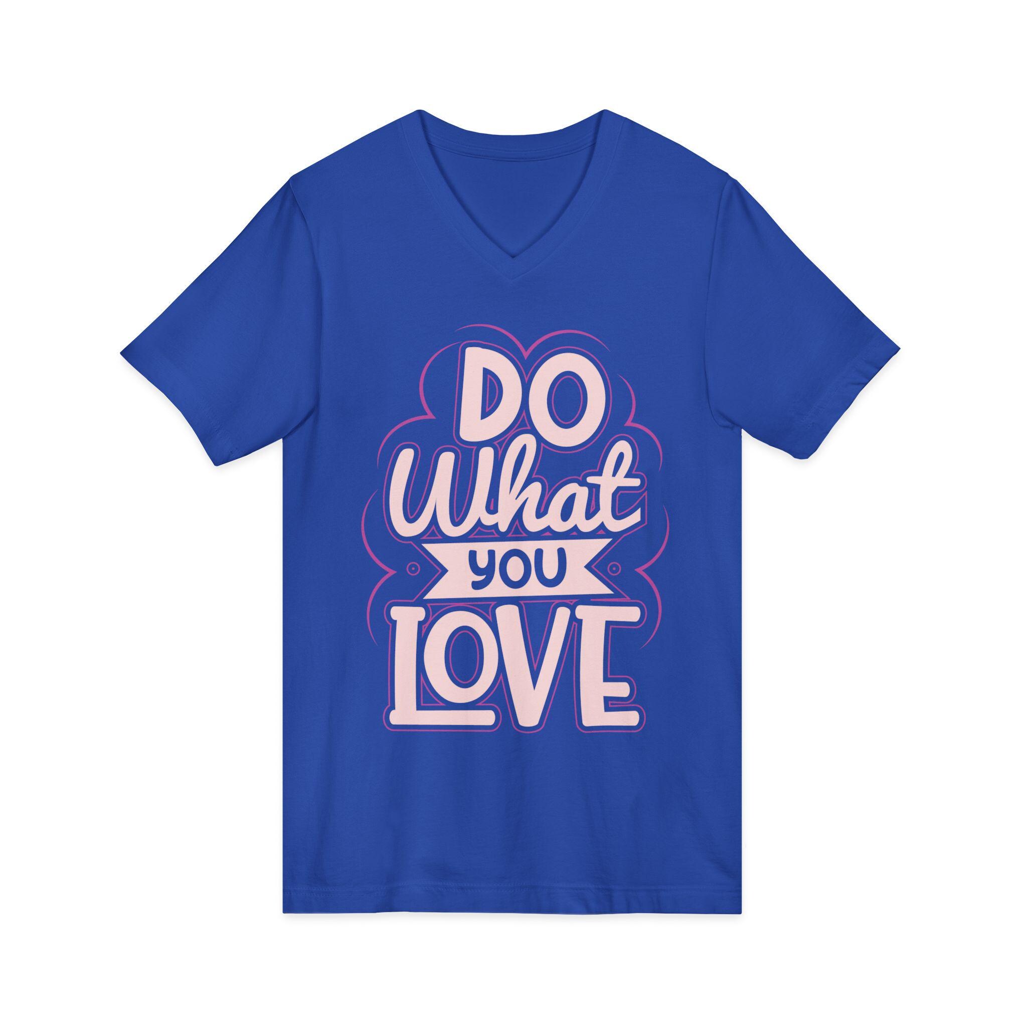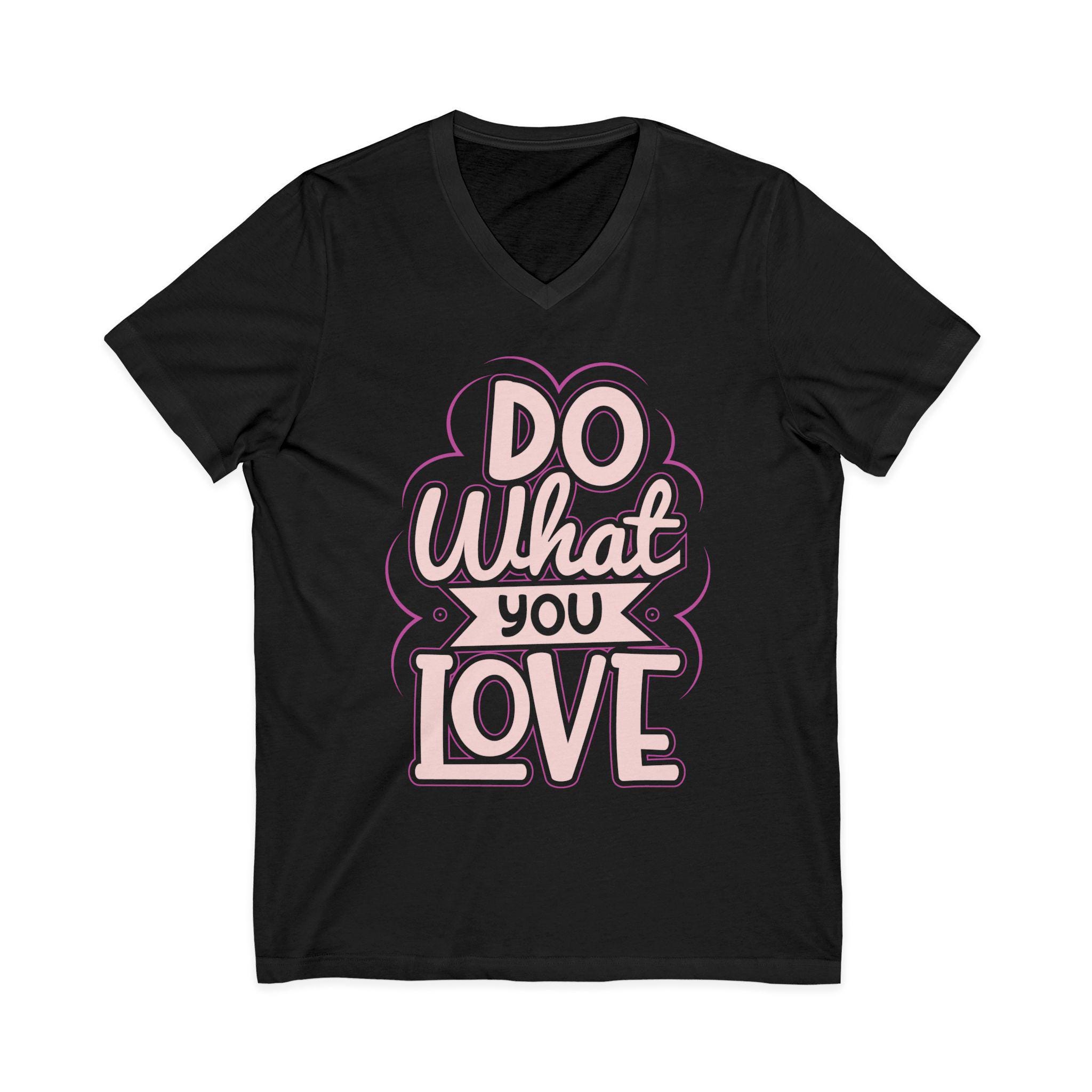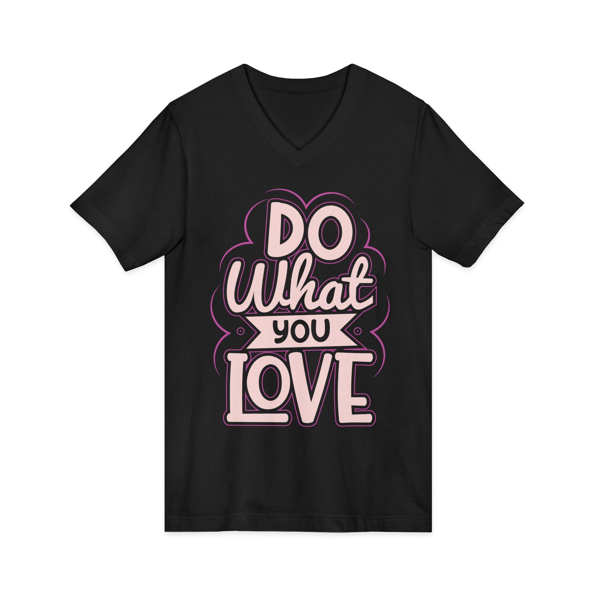This lightweight V-neck tee reads like a quiet reminder you carry with you. Hand-lettered “Do What You Love” lettering in soft pink and cream sits against a deep background, creating a warm, vintage-tinged mood that feels personal rather than loud. The modern retail V neckline drapes smoothly over the collarbone, moving easily from slow coffee mornings to long studio sessions or a breezy bike ride across campus. Thoughtful construction—side seams, shoulder tape, and a ribbed collar—keeps the shape through repeat wear. Choose pure cotton or a soft heather blend for breathable comfort; the tear-away label and responsibly certified manufacturing add an ethical ease to the everyday. Wear it on days when you need a gentle nudge to follow the work and moments that matter.