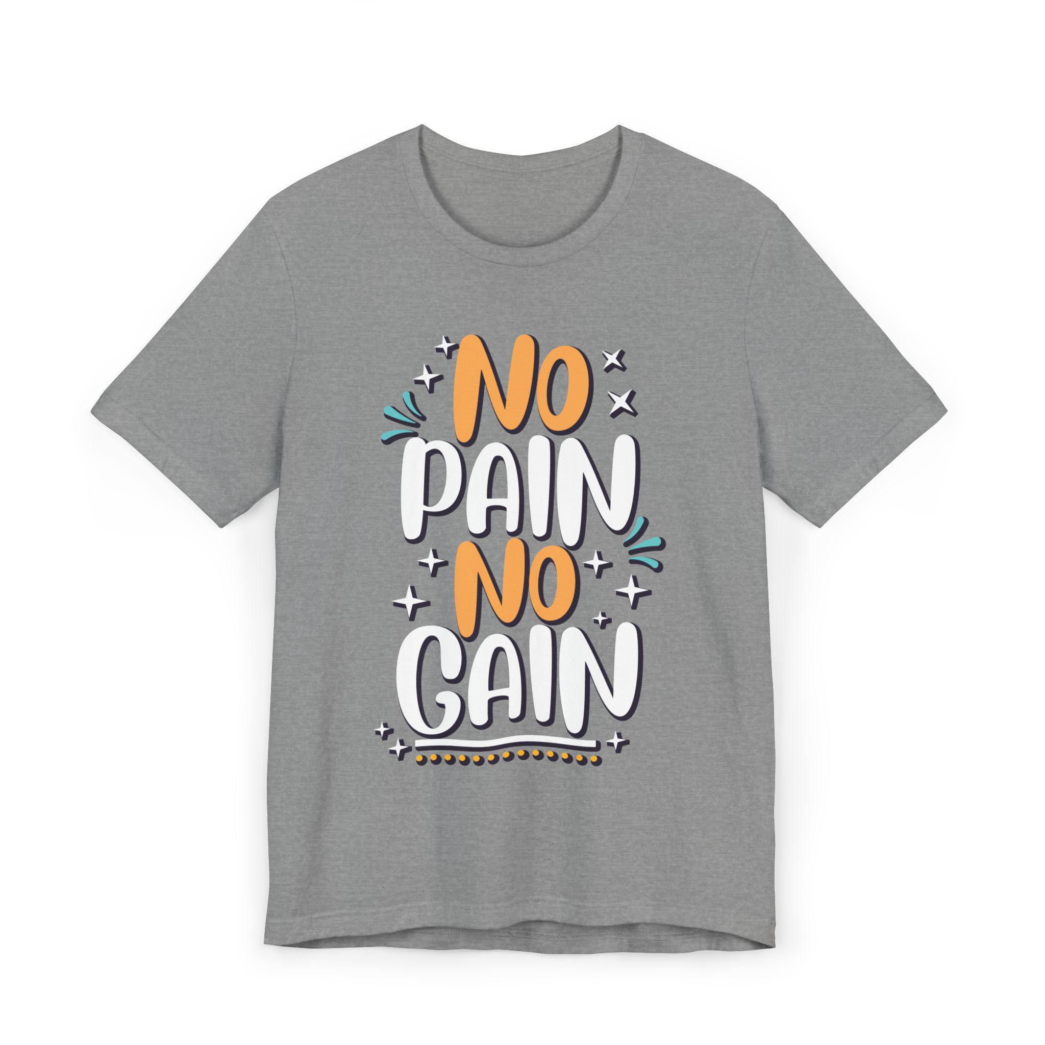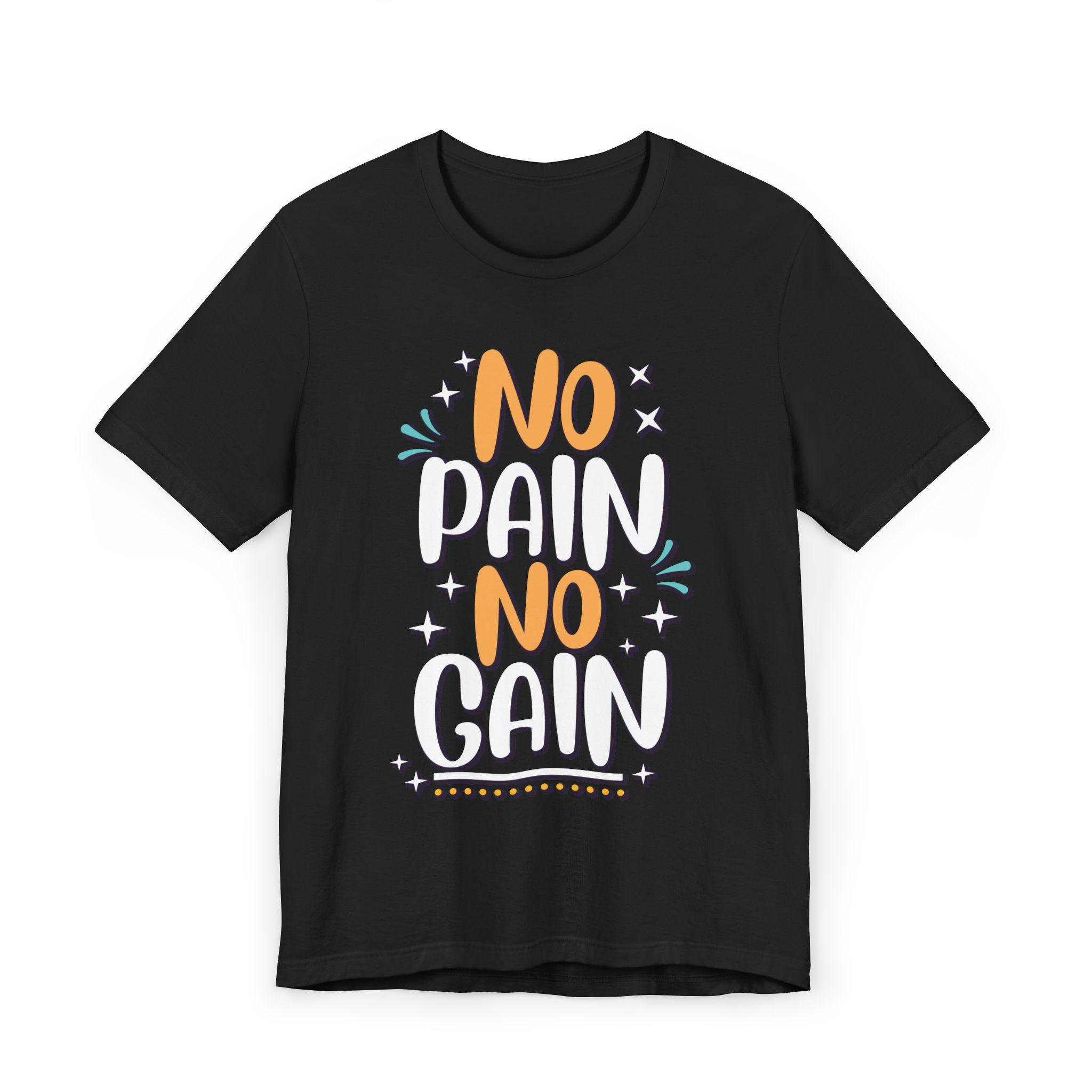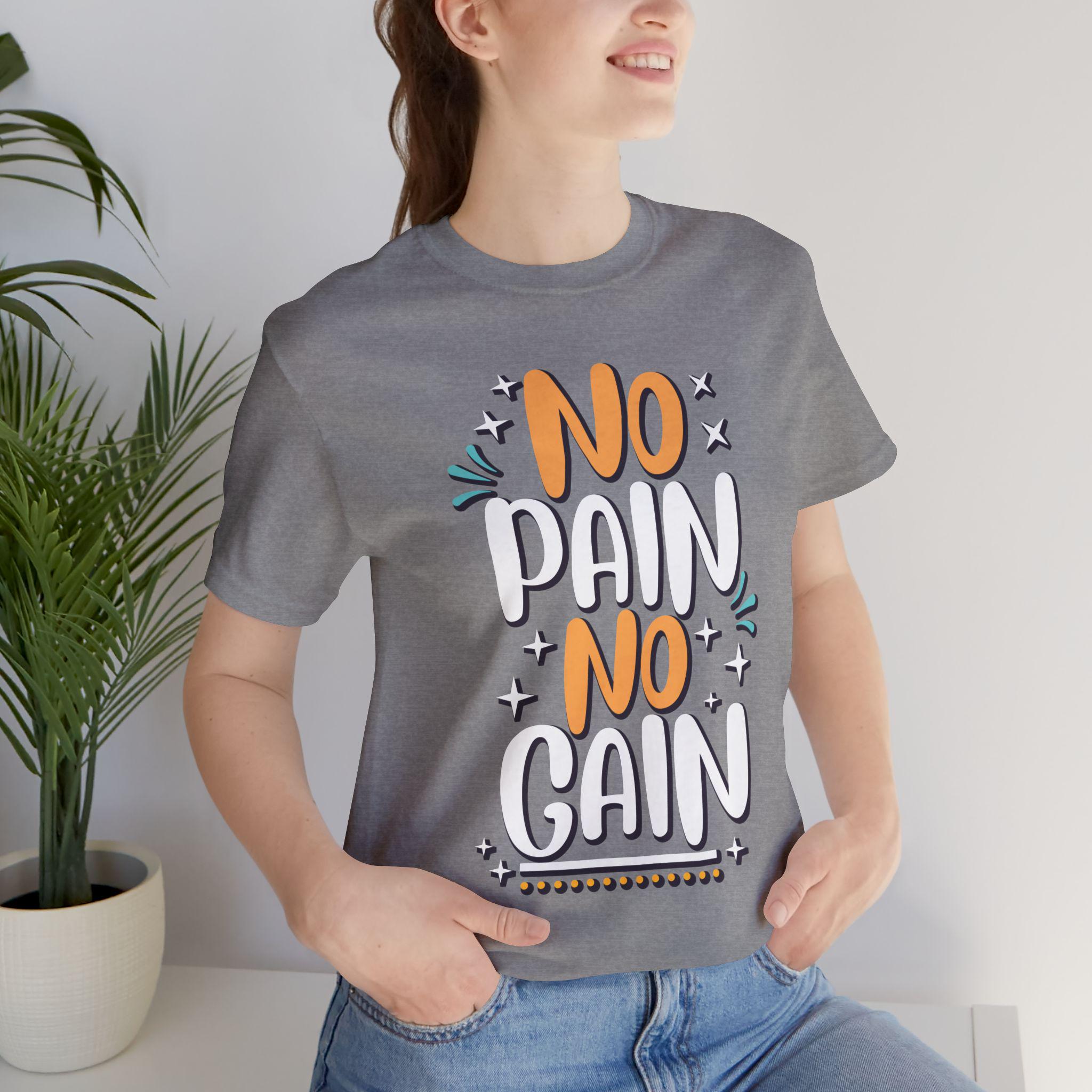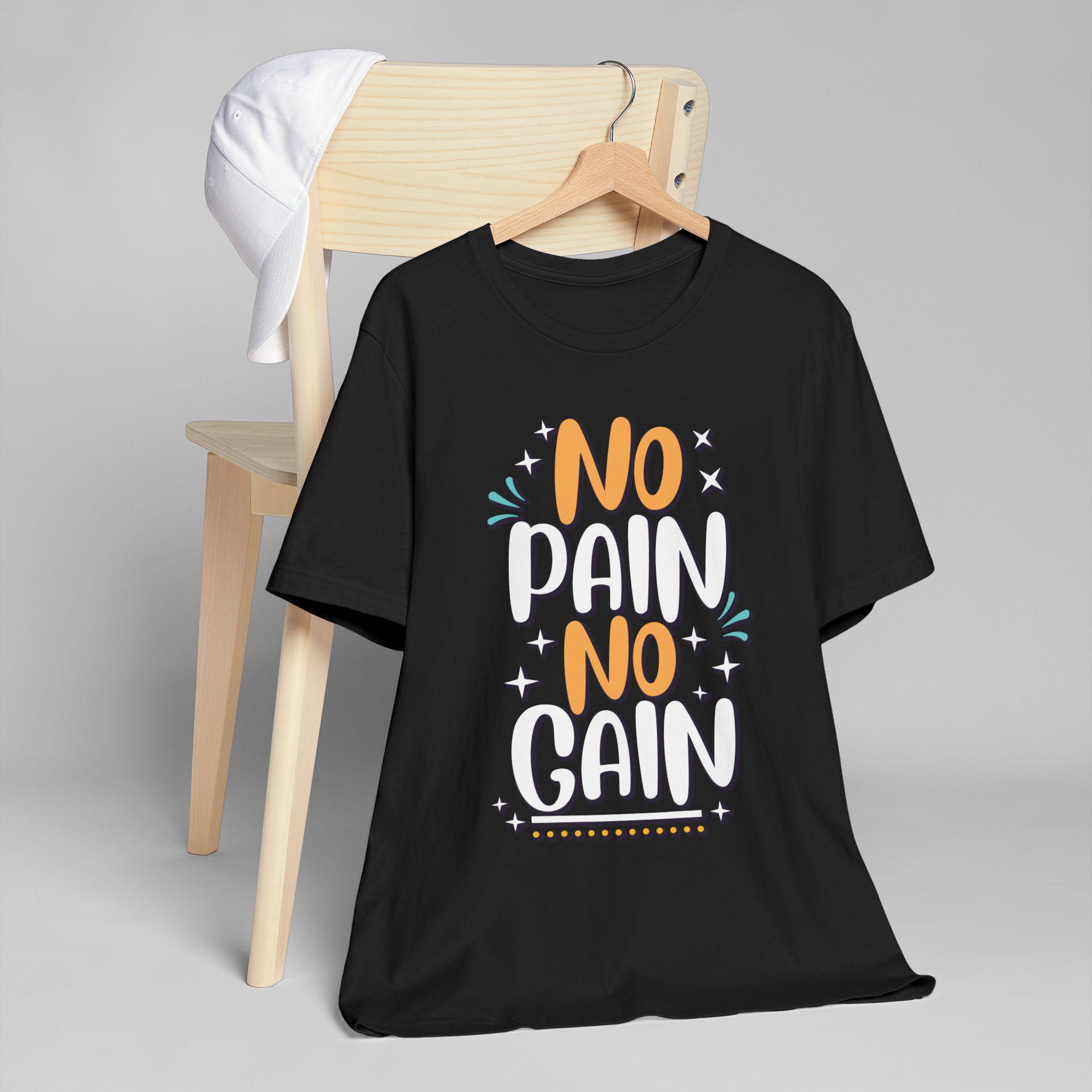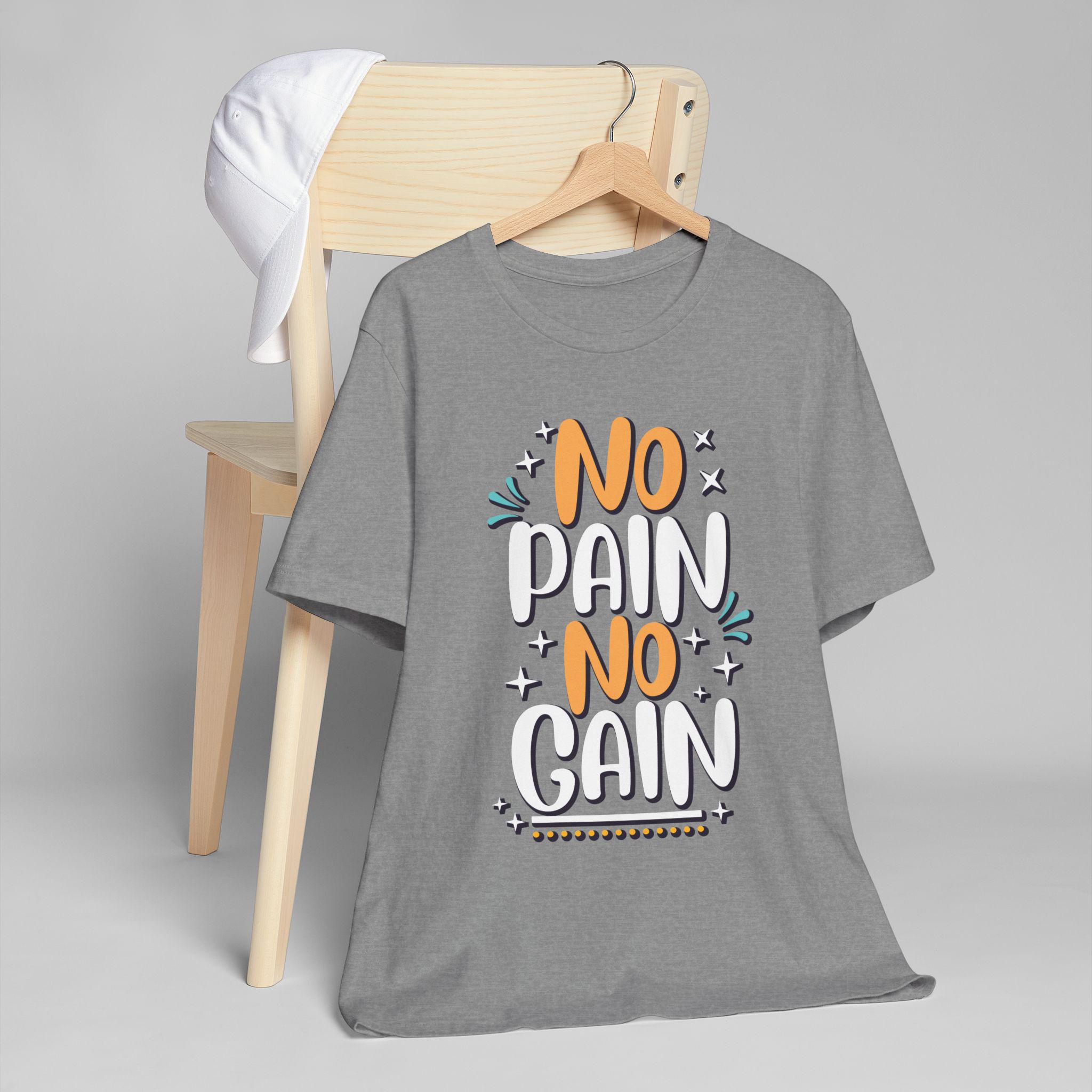 Light and honest, this jersey tee feels like a quick pep from an old training partner. The soft, ethically sourced cotton falls easy across the shoulders and breathes through every set and errand. Hand-lettered “No Pain No Gain” typography sits bright on the chest — a small, confident nudge that keeps you moving without shouting. Wear it solo for a swift gym session, layer it under a hoodie on a crisp morning walk, or let it hang loose during the weekend’s slow stretch. The crew neckline and retail fit keep lines simple and wearable. Little details — a ribbed collar that holds its shape, shoulder tape for stability, side seams for structure, and a tear-away label to reduce irritation — make it quietly dependable day after day.