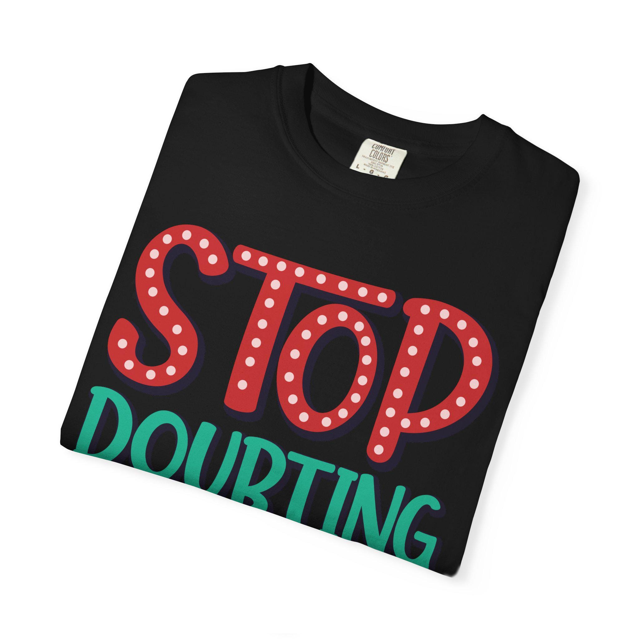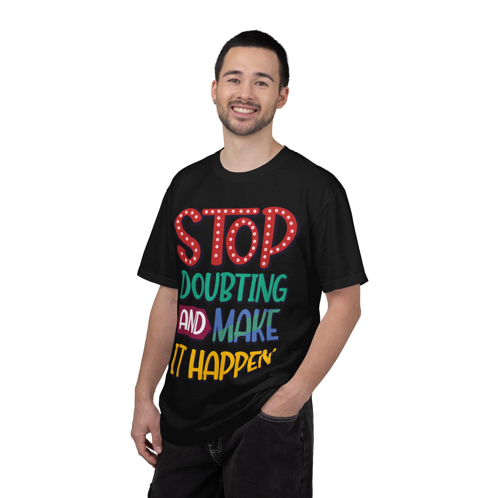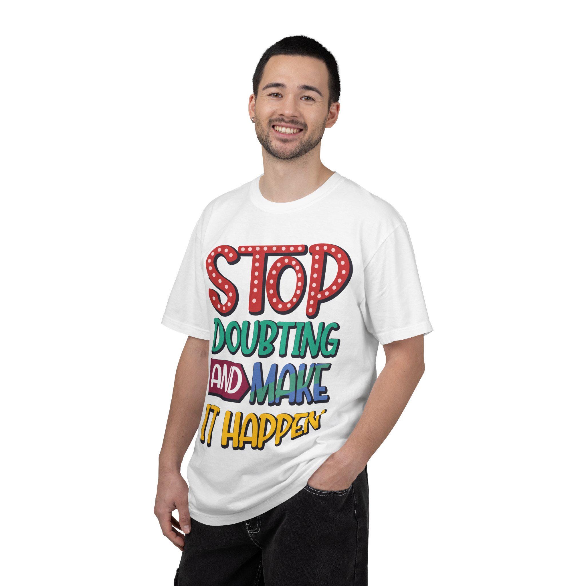Empower yourself with the "Stop Doubting and Make It Happen" tee, a powerful reminder to silence self-doubt and take action. Perfect for dreamers, entrepreneurs, gym enthusiasts, and students who are ready to make things happen.