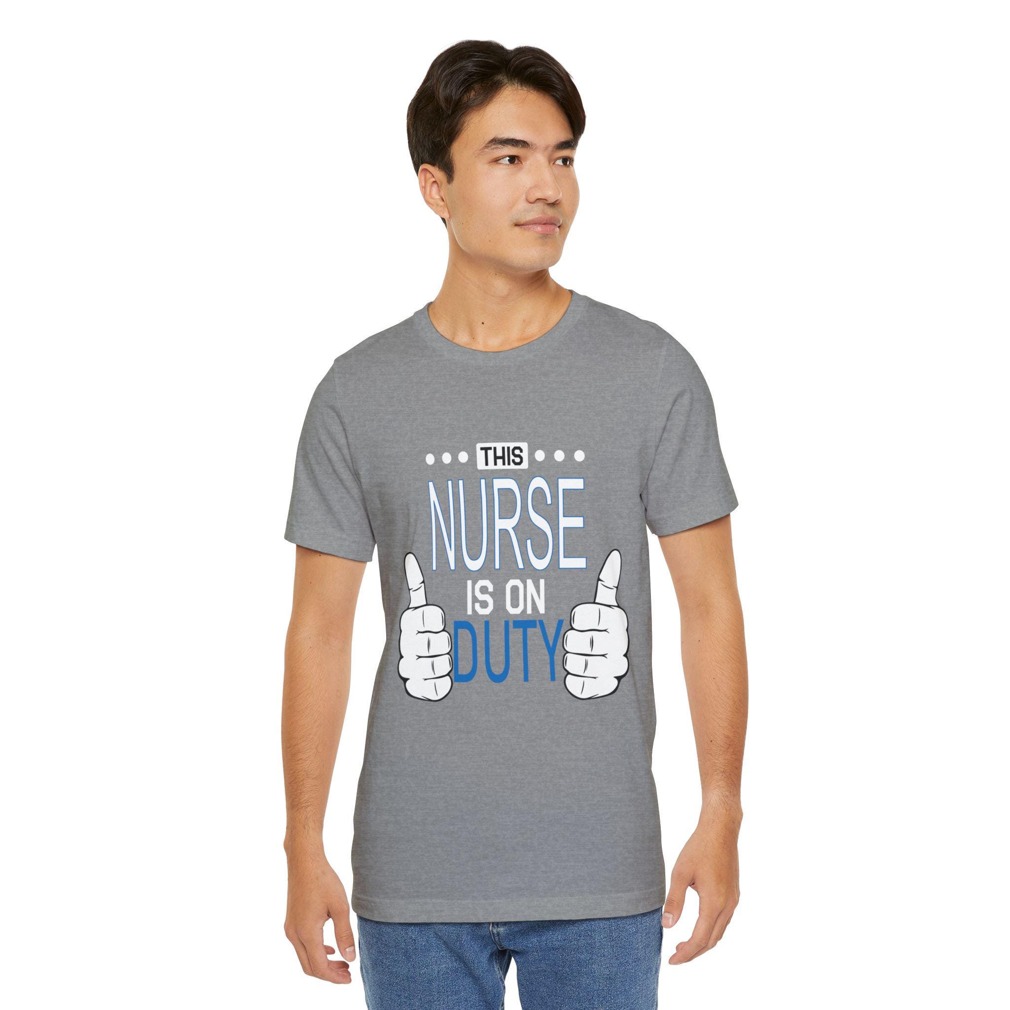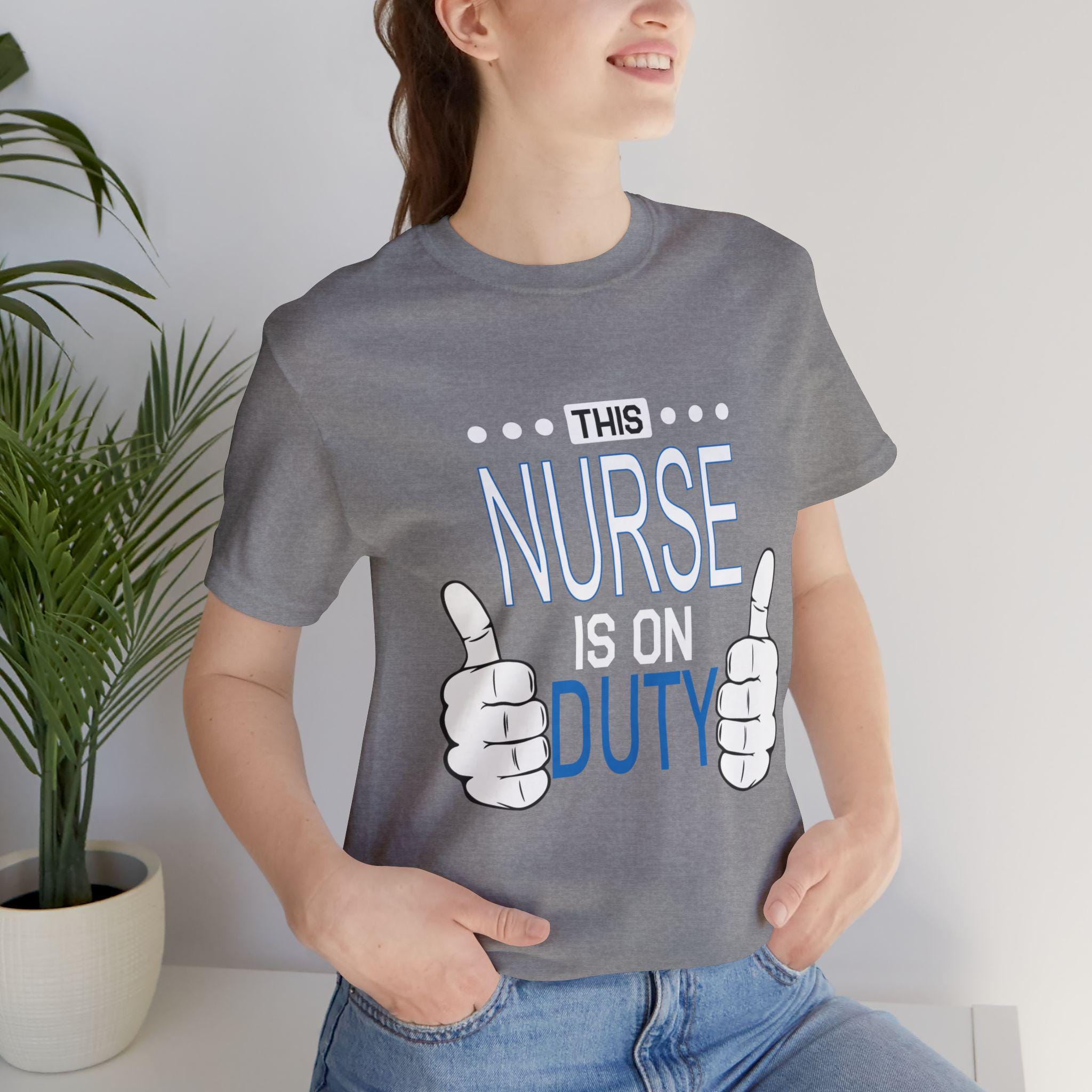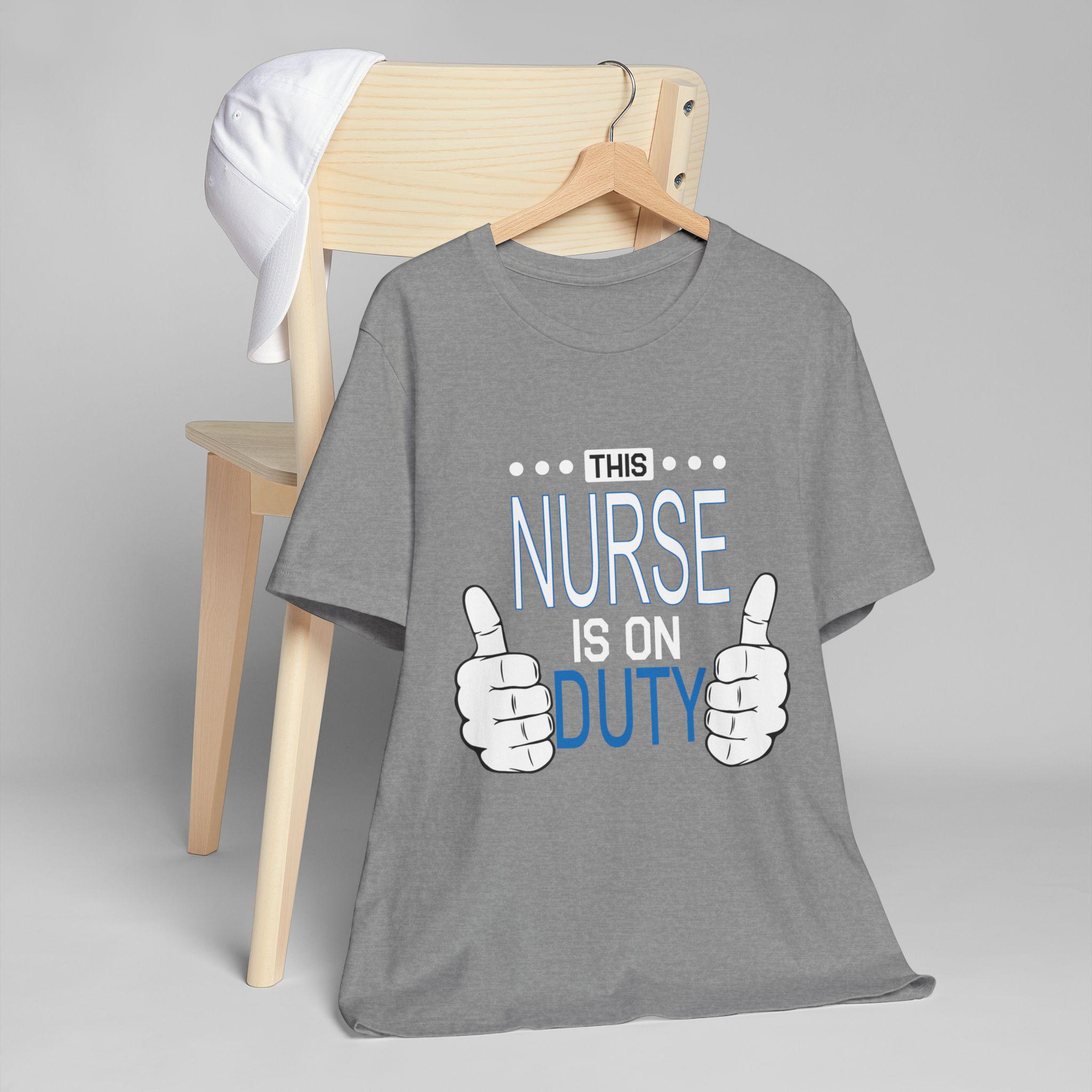 This lightweight tee moves with nurses who are always on the go—steady through rounds, charting, and the rare quiet moments between alarms. It slips easily over scrubs or under a jacket, feeling soft against skin and cool during long shifts. The simple graphic—two thumbs and the line “This Nurse Is On Duty”—speaks with quiet confidence, the kind of nod coworkers exchange in busy hallways. It keeps its shape through countless shifts and washes, the neat crew neck and retail fit layering cleanly with workwear or a post-shift sweater. Wear it for a night shift, a hectic weekday, or when you want something honest and comfortable to decompress in; it feels like the colleague who understands the work and the heart behind it.