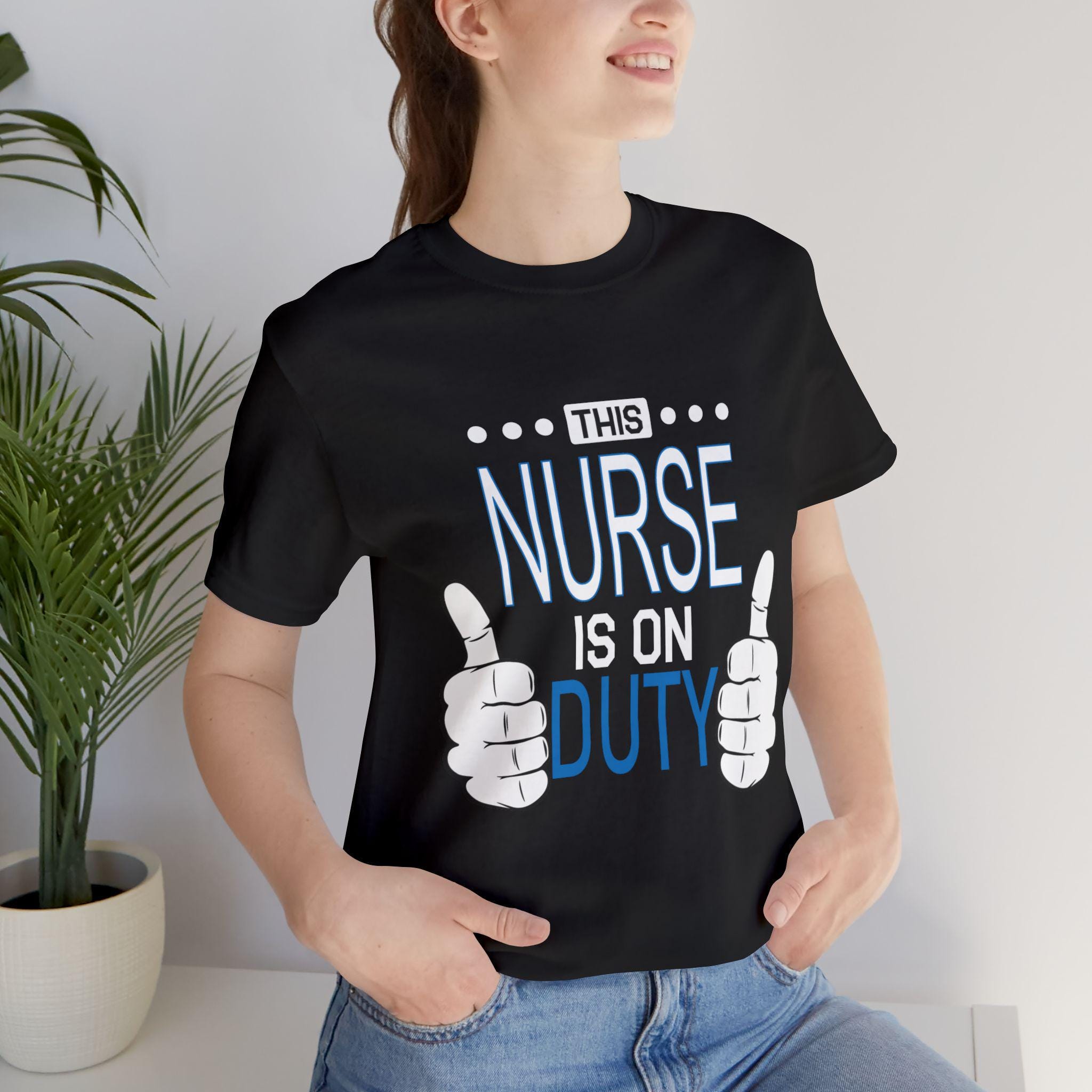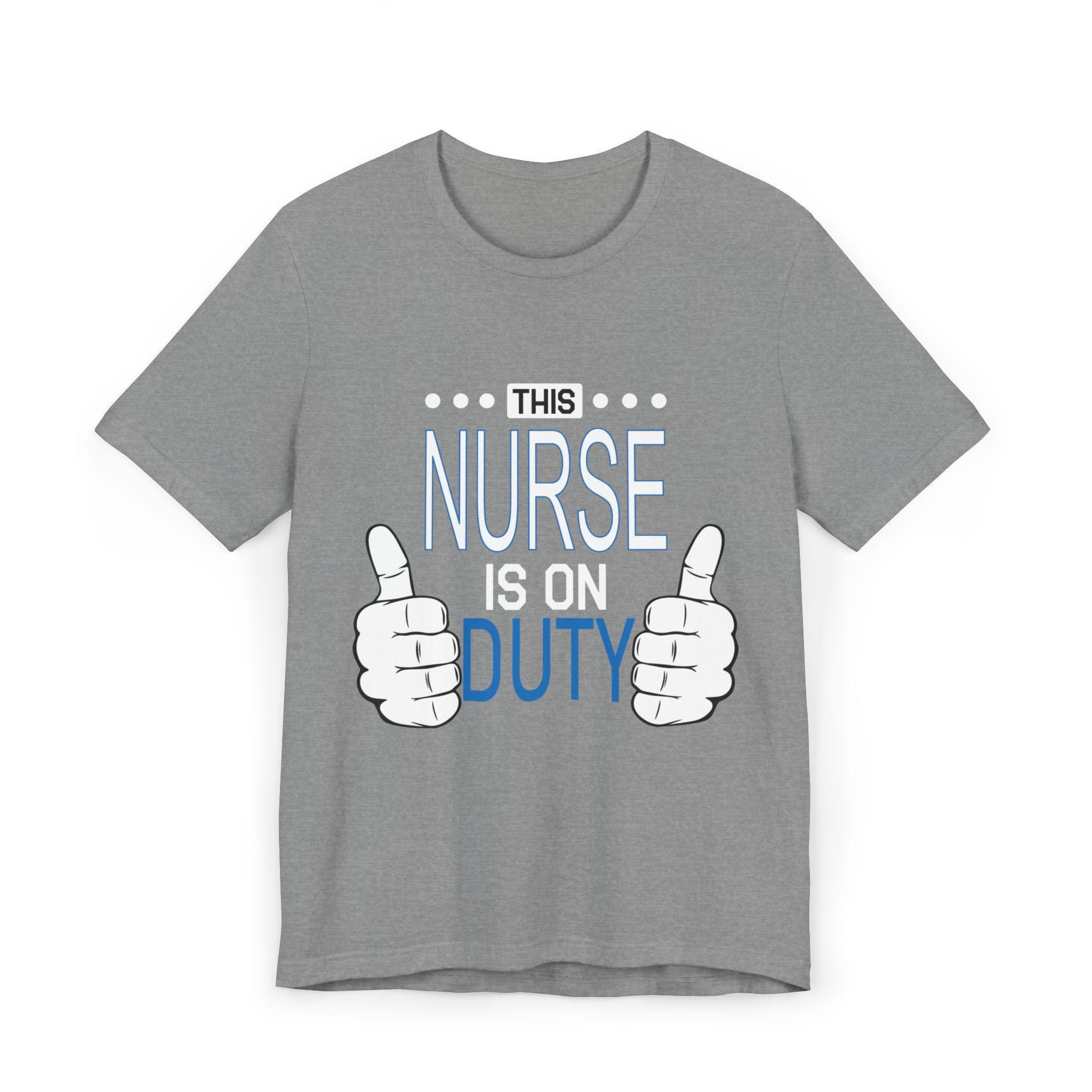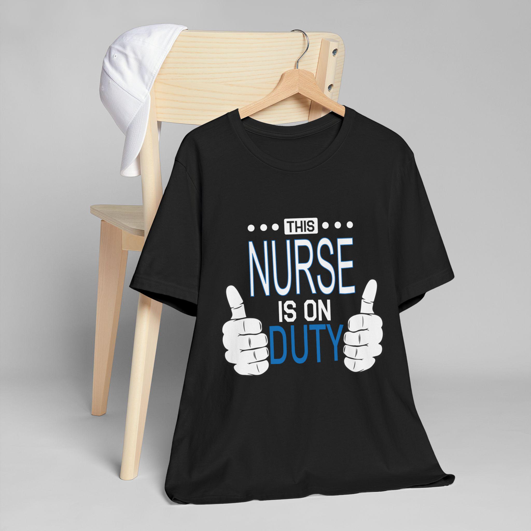 This lightweight tee moves with nurses who are always on the go—steady through rounds, charting, and the rare quiet moments between alarms. It slips easily over scrubs or under a jacket, feeling soft against skin and cool during long shifts. The simple graphic—two thumbs and the line “This Nurse Is On Duty”—speaks with quiet confidence, the kind of nod coworkers exchange in busy hallways. It keeps its shape through countless shifts and washes, the neat crew neck and retail fit layering cleanly with workwear or a post-shift sweater. Wear it for a night shift, a hectic weekday, or when you want something honest and comfortable to decompress in; it feels like the colleague who understands the work and the heart behind it.