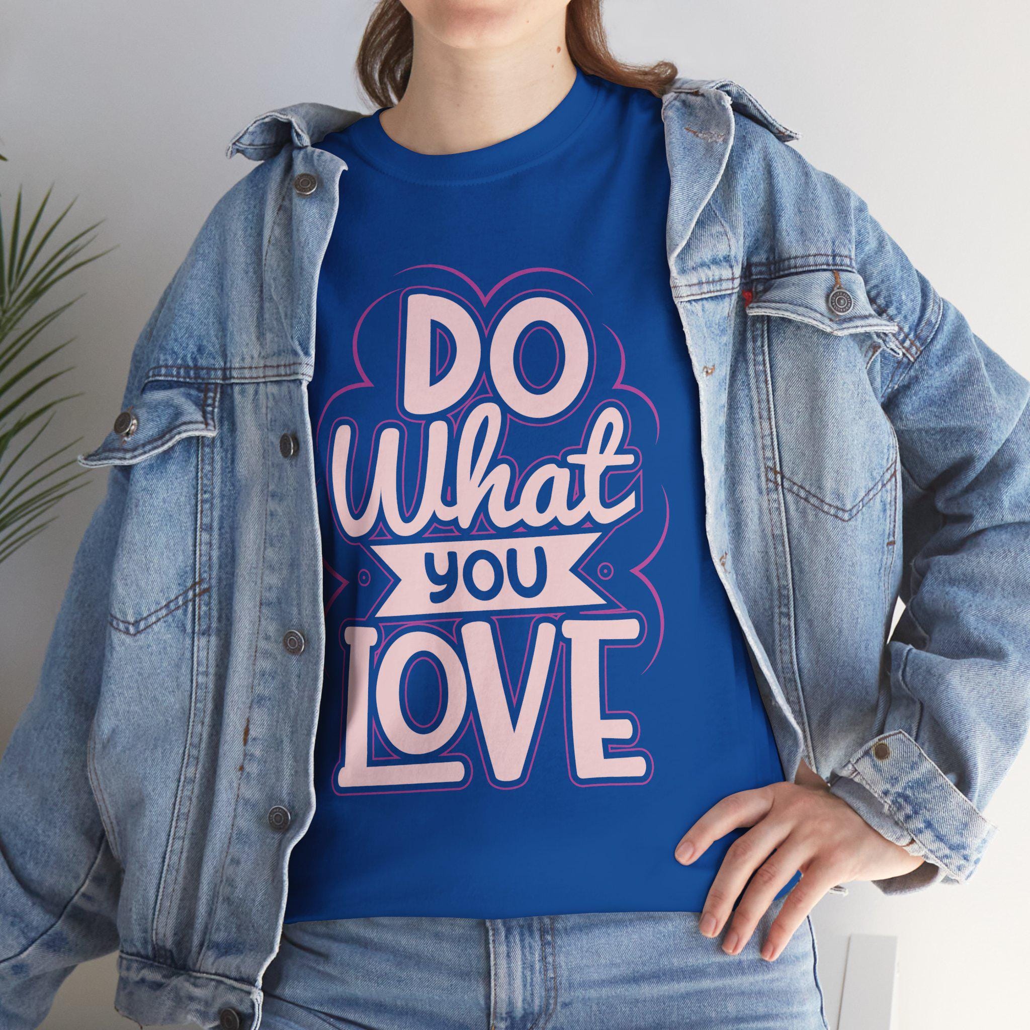 This soft white tee feels like a quiet promise you can fold into a slow morning. Hand-lettered in pastel pink, the centered “Do What You Love” note reads like a page from a small creative journal—modest, steady, and gently encouraging. Lightweight with a relaxed crew cut, it moves easily through sketchbook hours, coffee breaks, and layered studio days. The tubular knit and twill shoulder tape keep the silhouette smooth and the shoulders strong, while the ribbed seam-free collar stays snug without digging in. The print stays crisp thanks to a mix of DTG and DTF techniques, so that tiny handwritten message remains clear wash after wash. For someone who measures success in daily attempts and soft routines, this tee is a wearable nudge to keep making and choosing what matters.