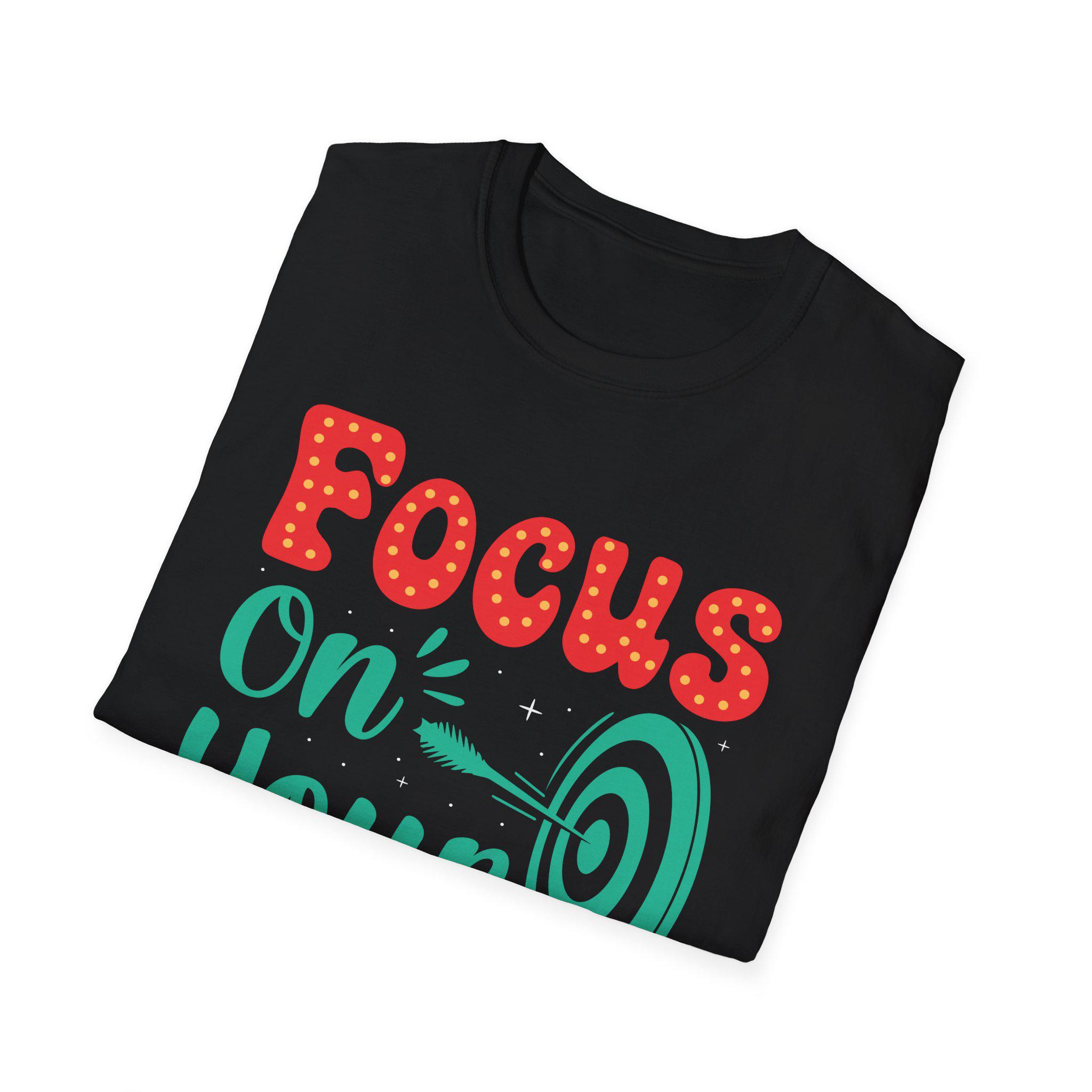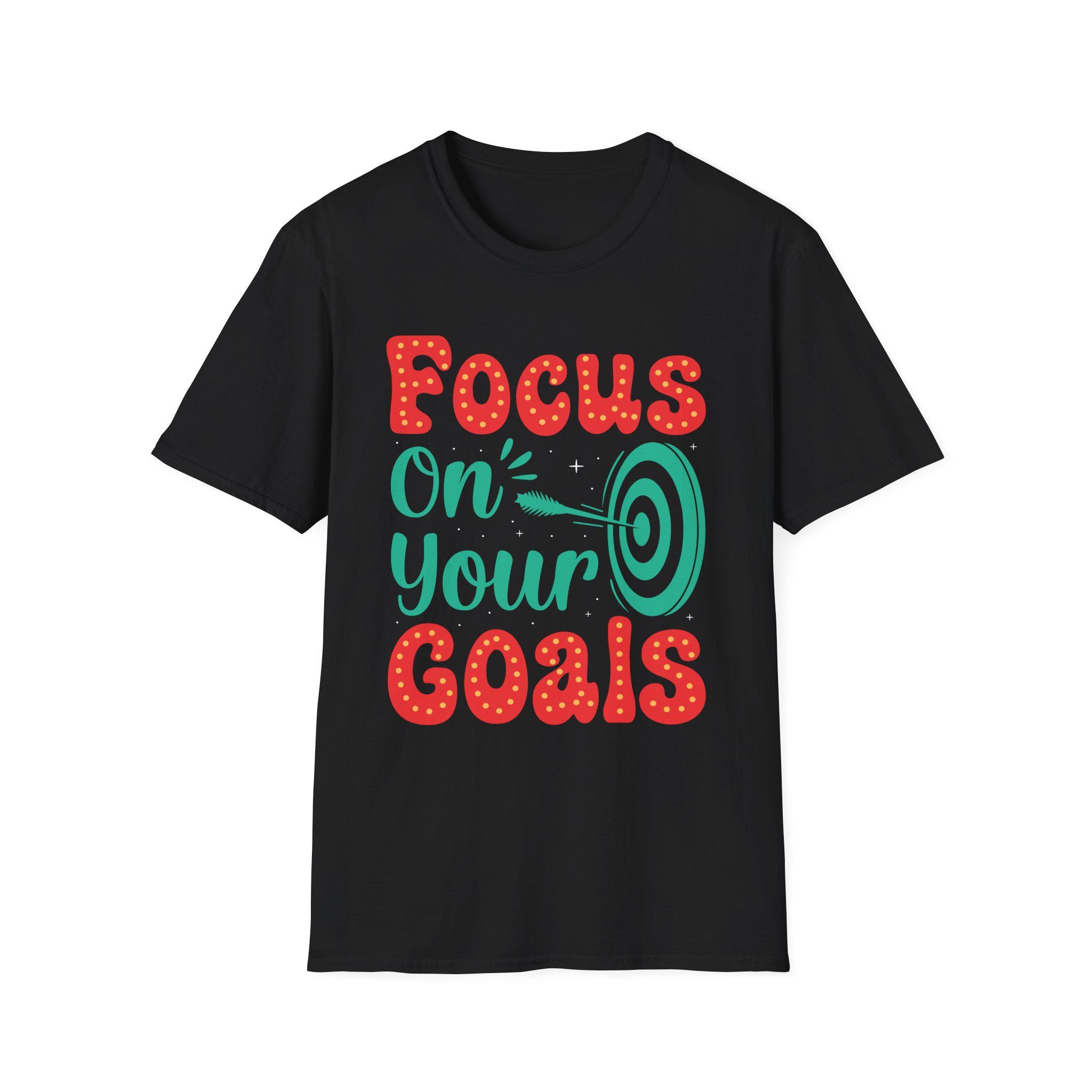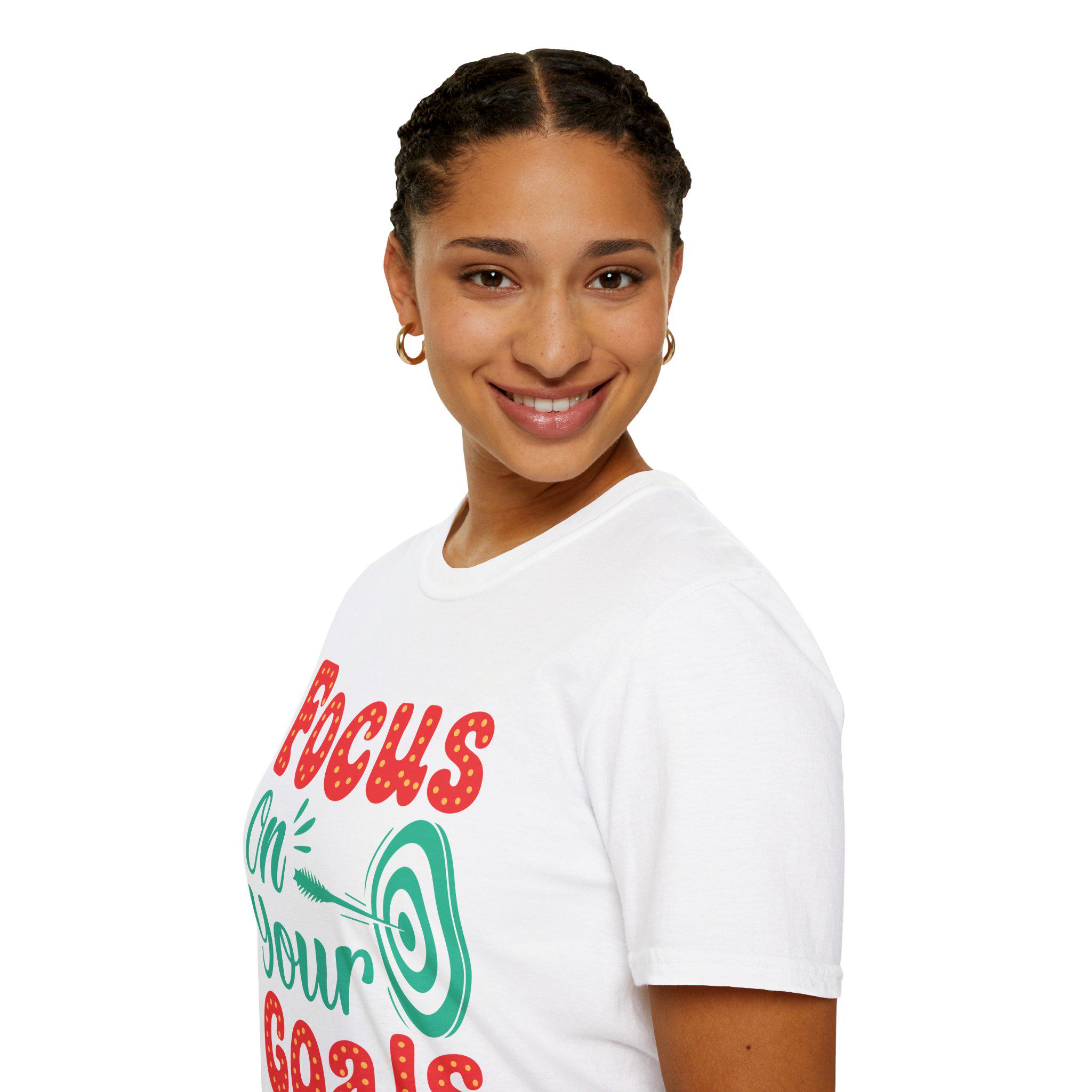 This lightweight cotton tee feels like a quiet pep talk you can wear. The hand-lettered “Focus On Your Goals” graphic and playful target sit low-key but motivating — the kind of reminder that nudges you through rushed mornings, late-night study sprints, or collaborative planning sessions. Bright, cheerful inks pop against neutral and natural tones at the café counter, and the clean crew neck silhouette layers smoothly under hoodies or jackets when you need extra warmth. Breathable, soft ring-spun cotton settles in as a reliable everyday layer that keeps you moving forward, one small step at a time. Wear it to brainstorming meetups, goal-setting workshops, or while crossing items off a long to-do list — it’s built to keep its shape and color through the grind.