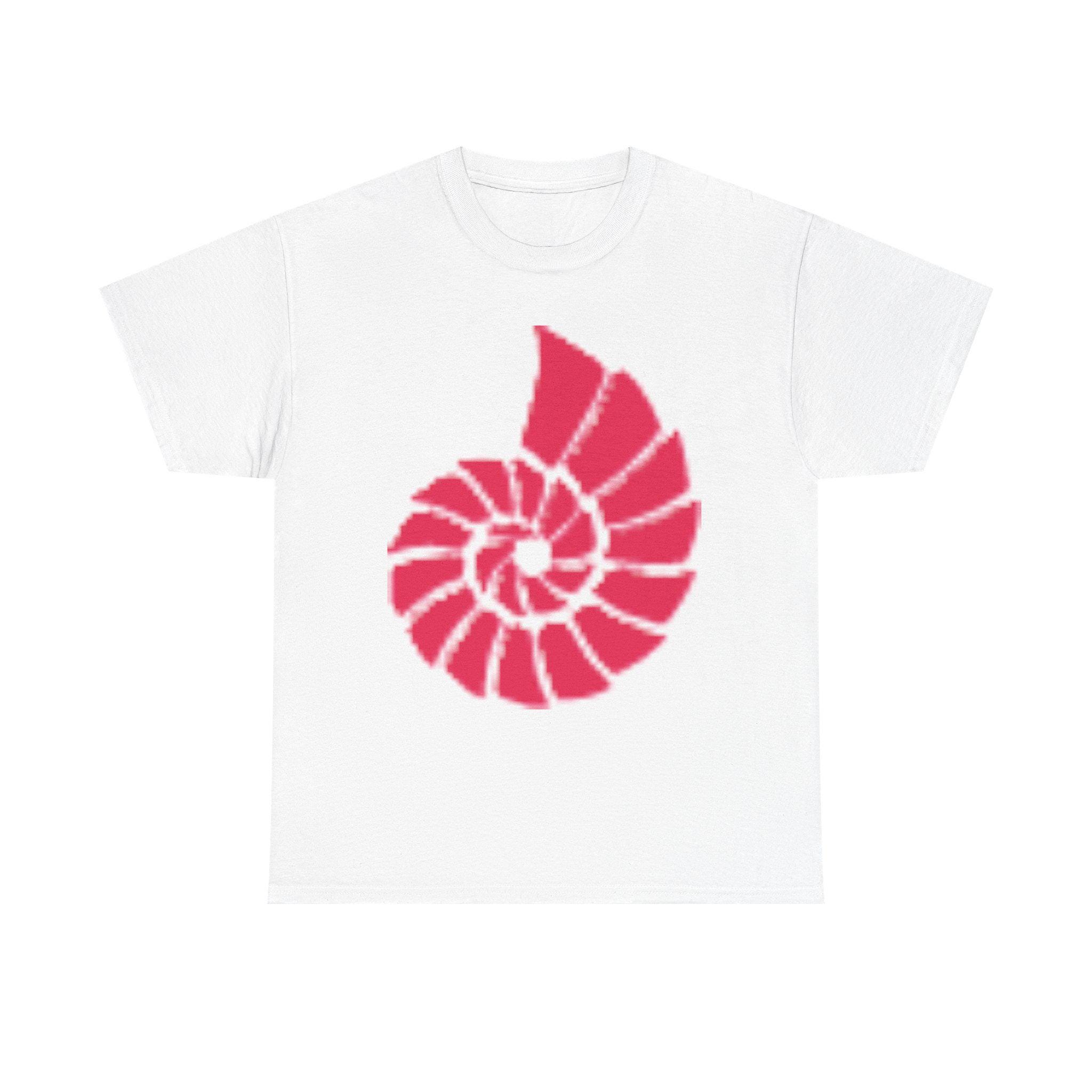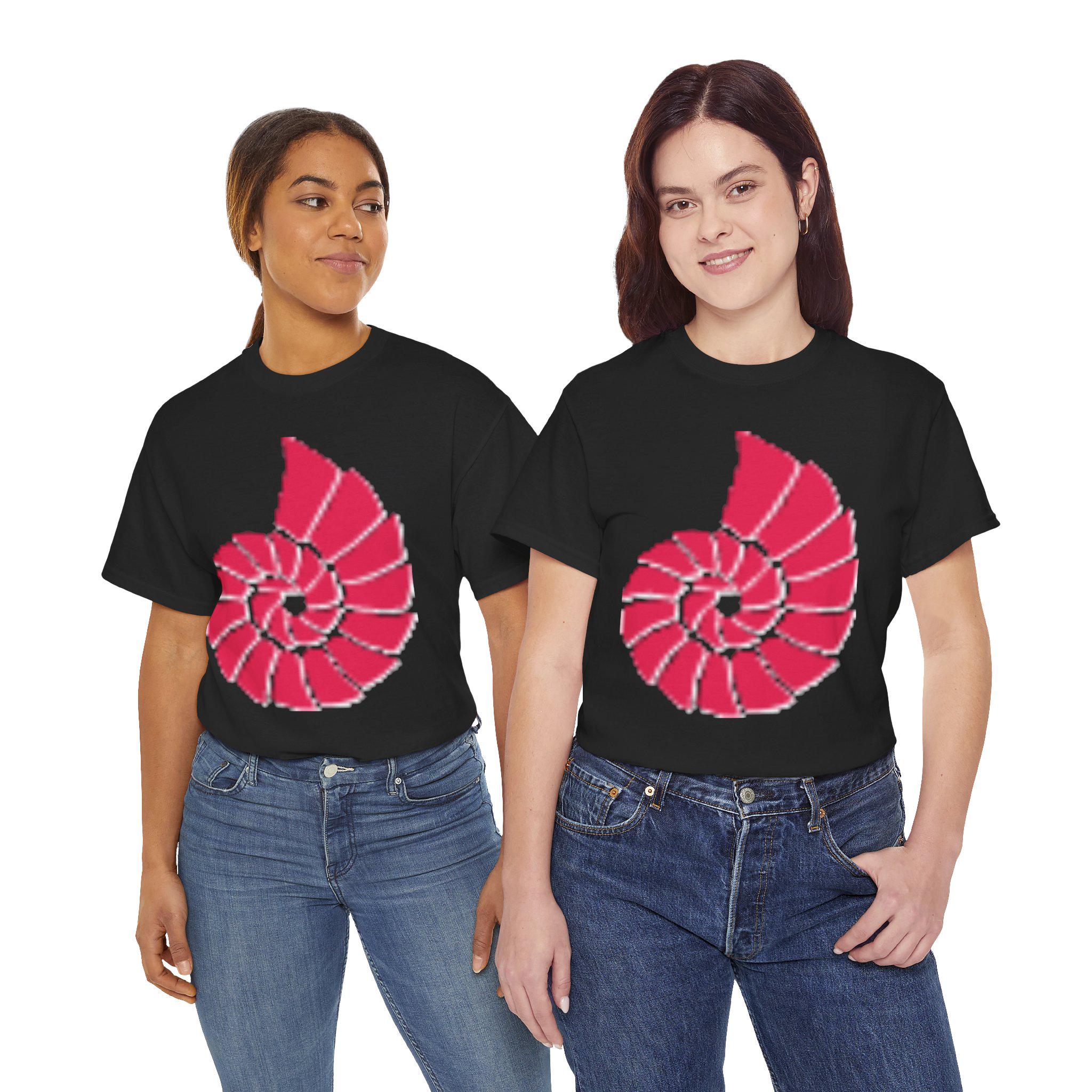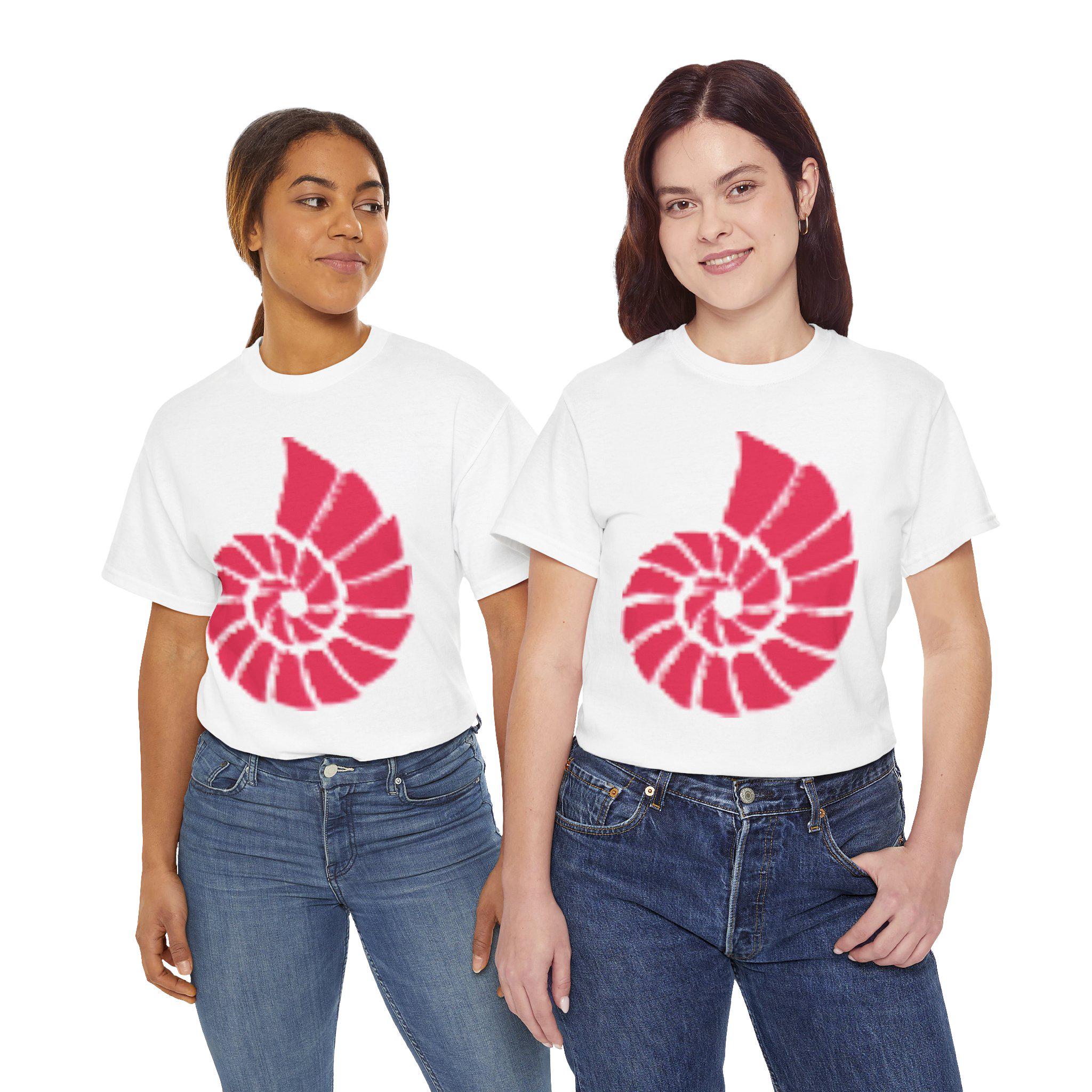 Hand-Drawn Coral Red Nautilus Spiral Tee - Coastal-inspired Graphic T-shirt for Quiet Conversations