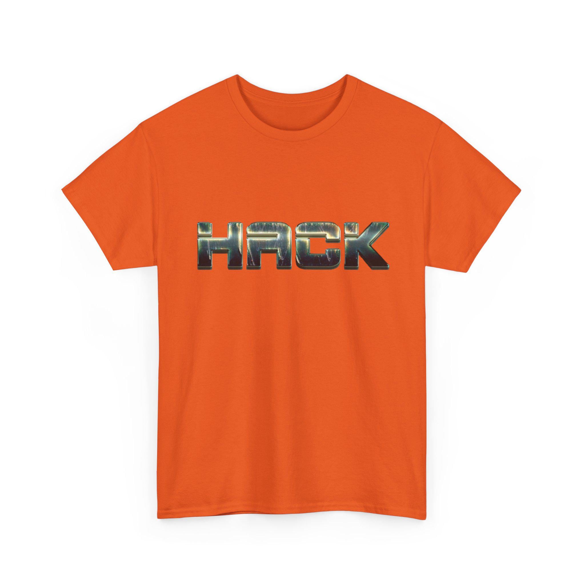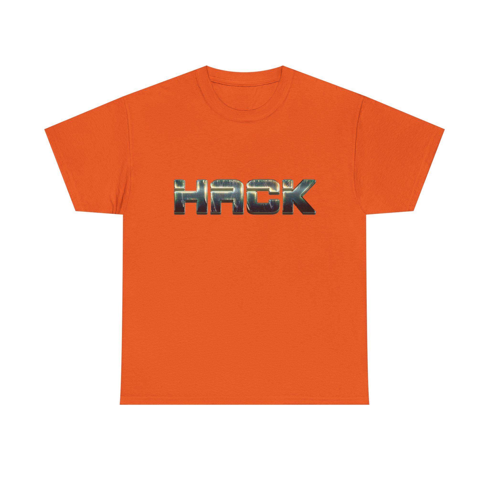This heavyweight cotton tee is for nights spent chasing bugs and mornings debugging with a coffee in hand. The bold orange canvas carries a metallic, camo-textured HACK logo across the chest — subtle from across the room, unmistakable up close. It sits comfortably in a relaxed crew fit that layers easily under a utility jacket or wears alone beneath neon meetup signs. The fabric feels substantial yet breathable, so it holds up through long sprints and frequent washes while keeping its shape. Slip it on for a late-night deploy, a hacker lounge talk, or a casual coffee run; it reads like code written in cloth — functional, rugged, and quietly proud.