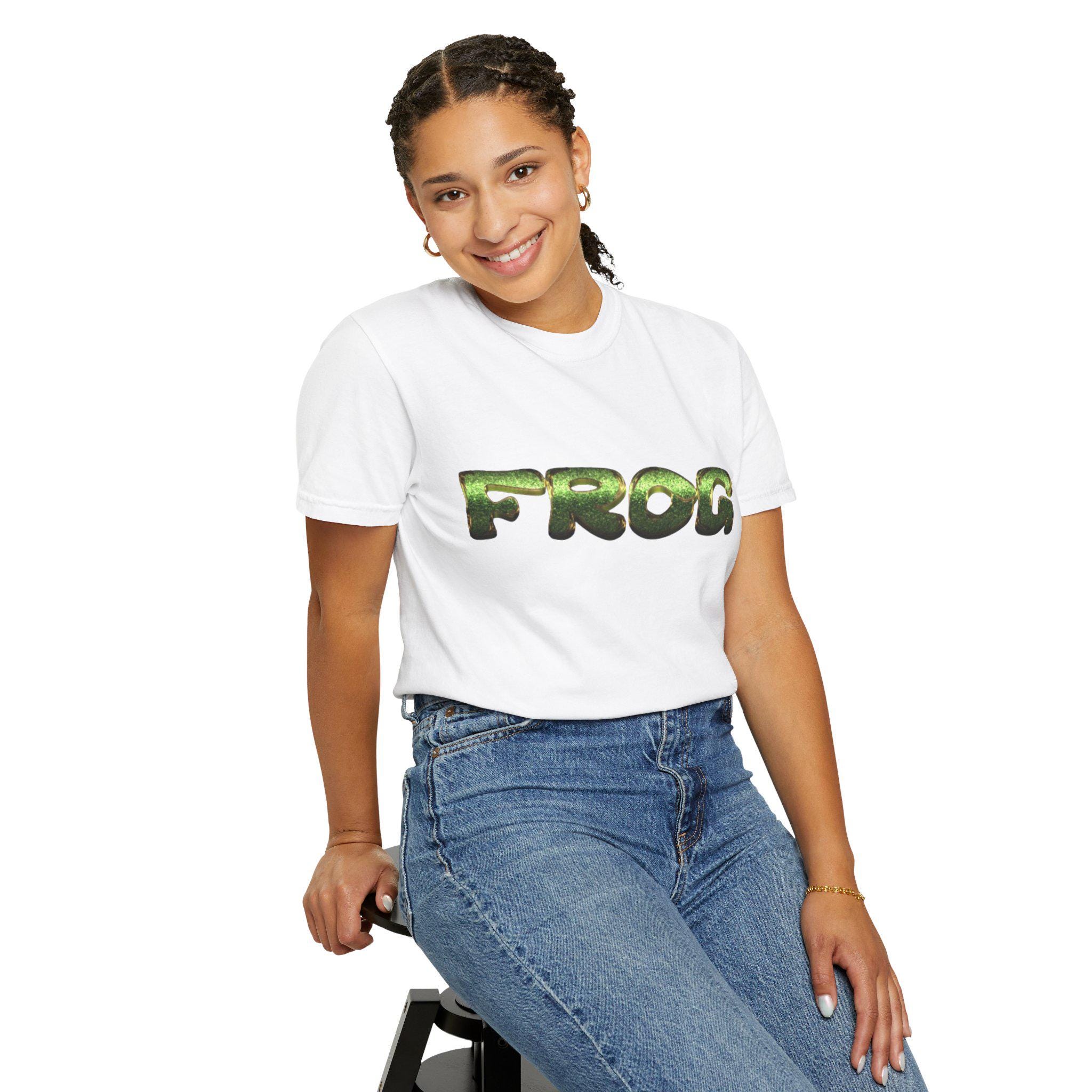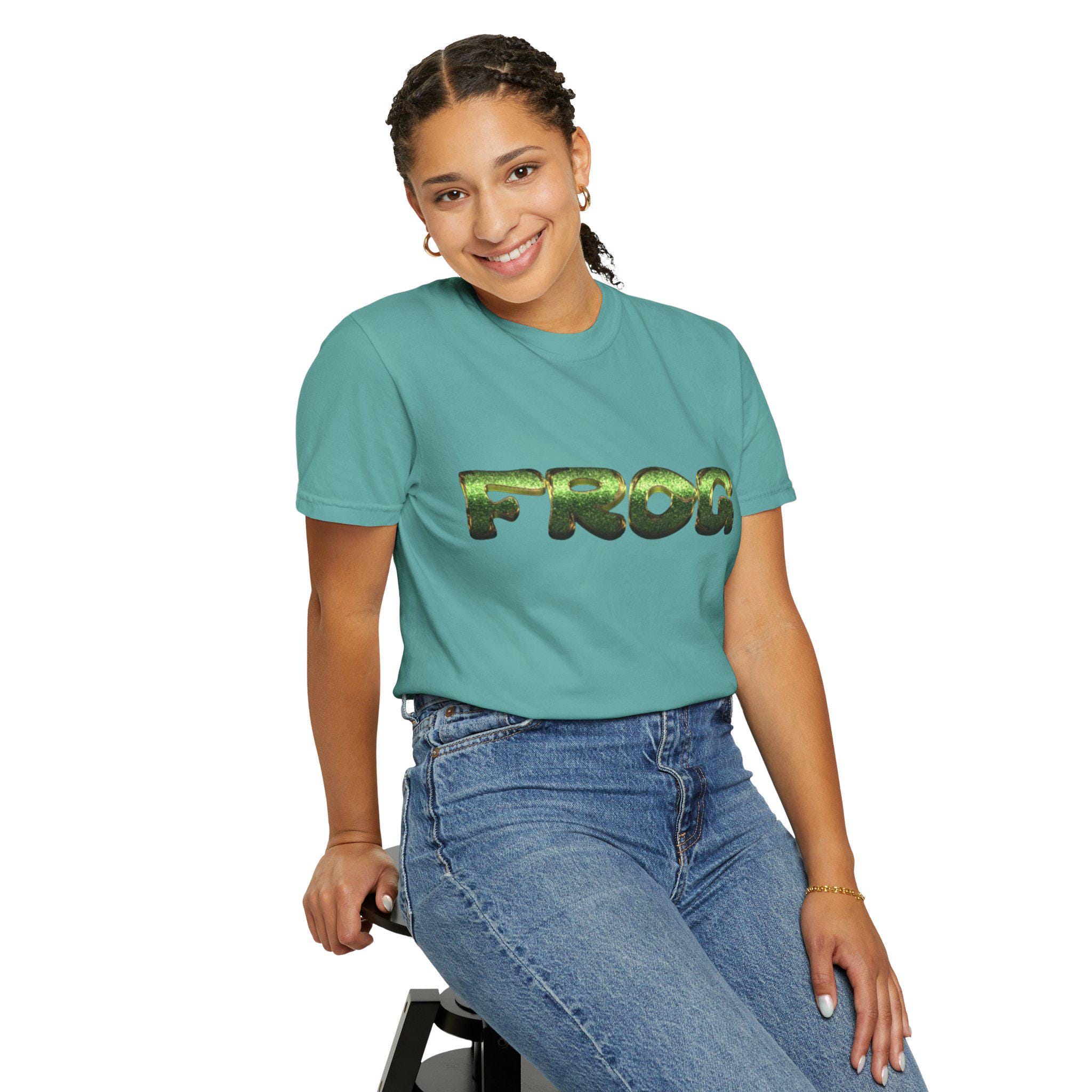 Lightweight yet substantial, this garment-dyed tee brings a quiet, lived-in comfort with a playful edge. The soft, textured color from post-construction dyeing gives the cotton a worn-in feel that pairs naturally with the glossy, amphibian-inspired graphic across the chest. Wear it on slow weekends, at low-key meetups, or when you want your outfit to feel relaxed but intentionally expressive. The relaxed cut and heavyweight knit sit comfortably whether you’re layering under a jacket or going solo in warm weather. It’s for people who appreciate tactile fabrics, subtle color variation, and a touch of nature-driven humor in their everyday wardrobe.