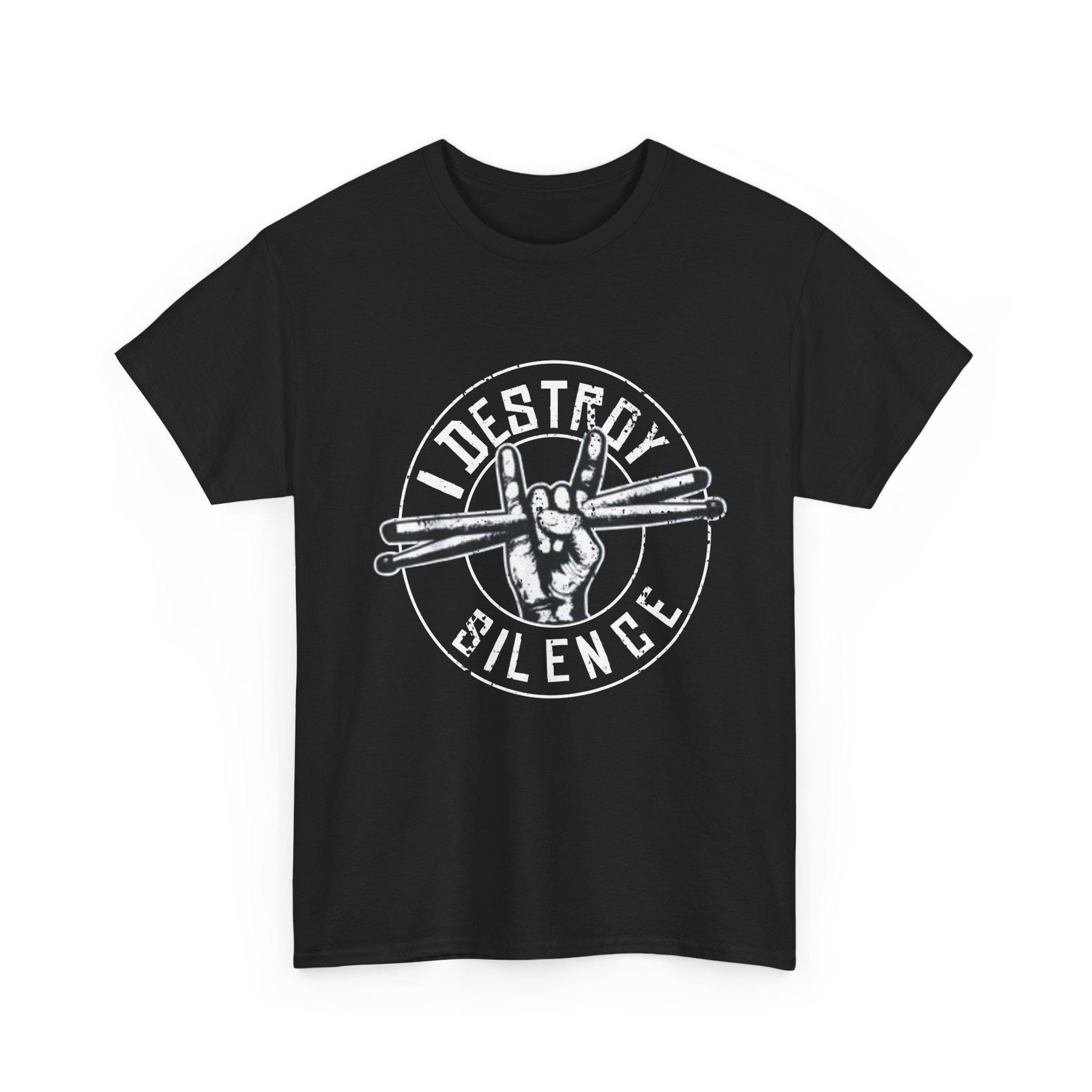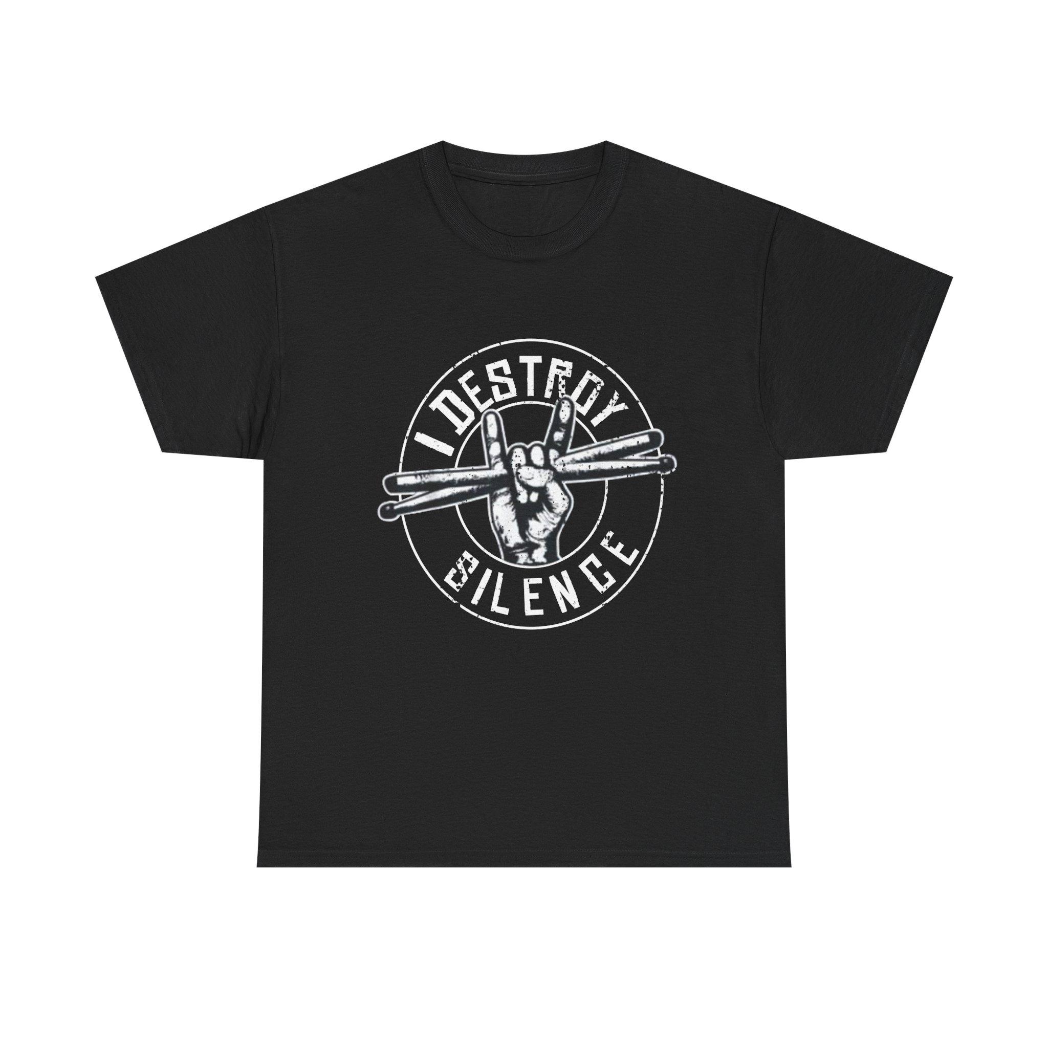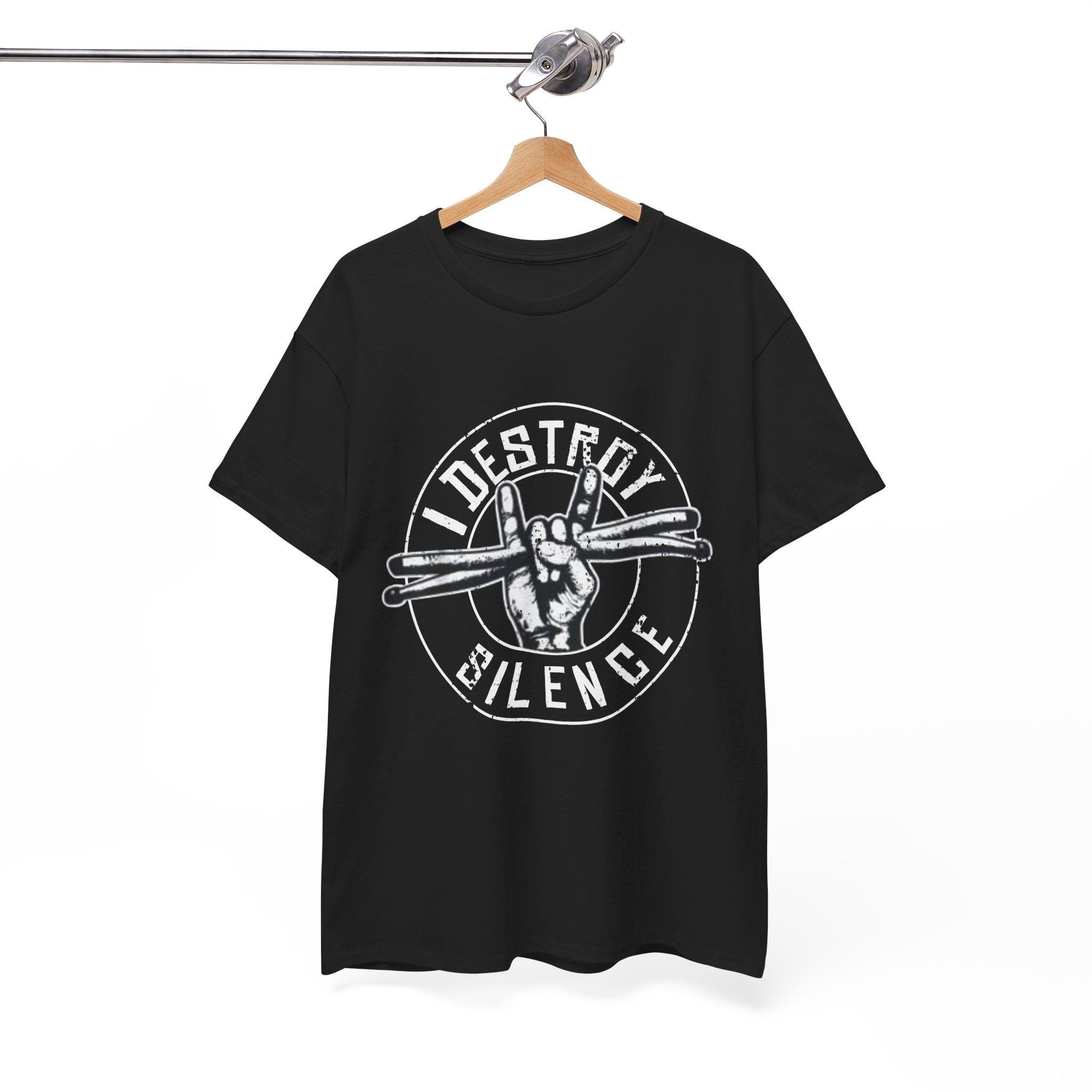 This Drummer Shirt – I Destroy Silence Drumsticks Tee is the perfect gift for drummers, musicians, rock band members, music students, or anyone who shares a passion for music. Show off your love for drumming with this unique and stylish tee.